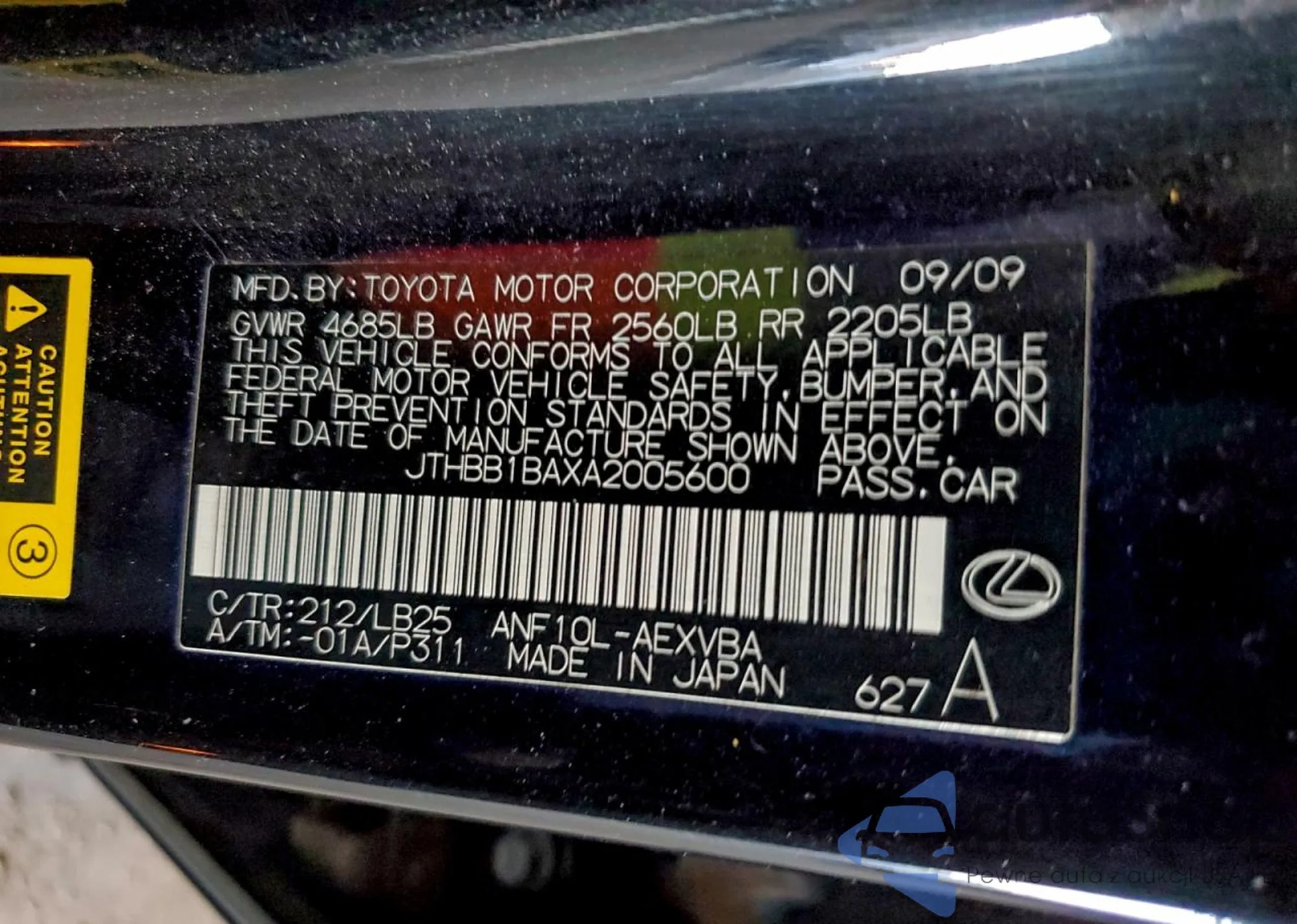 VIN: JTHBB1BAXA2005600