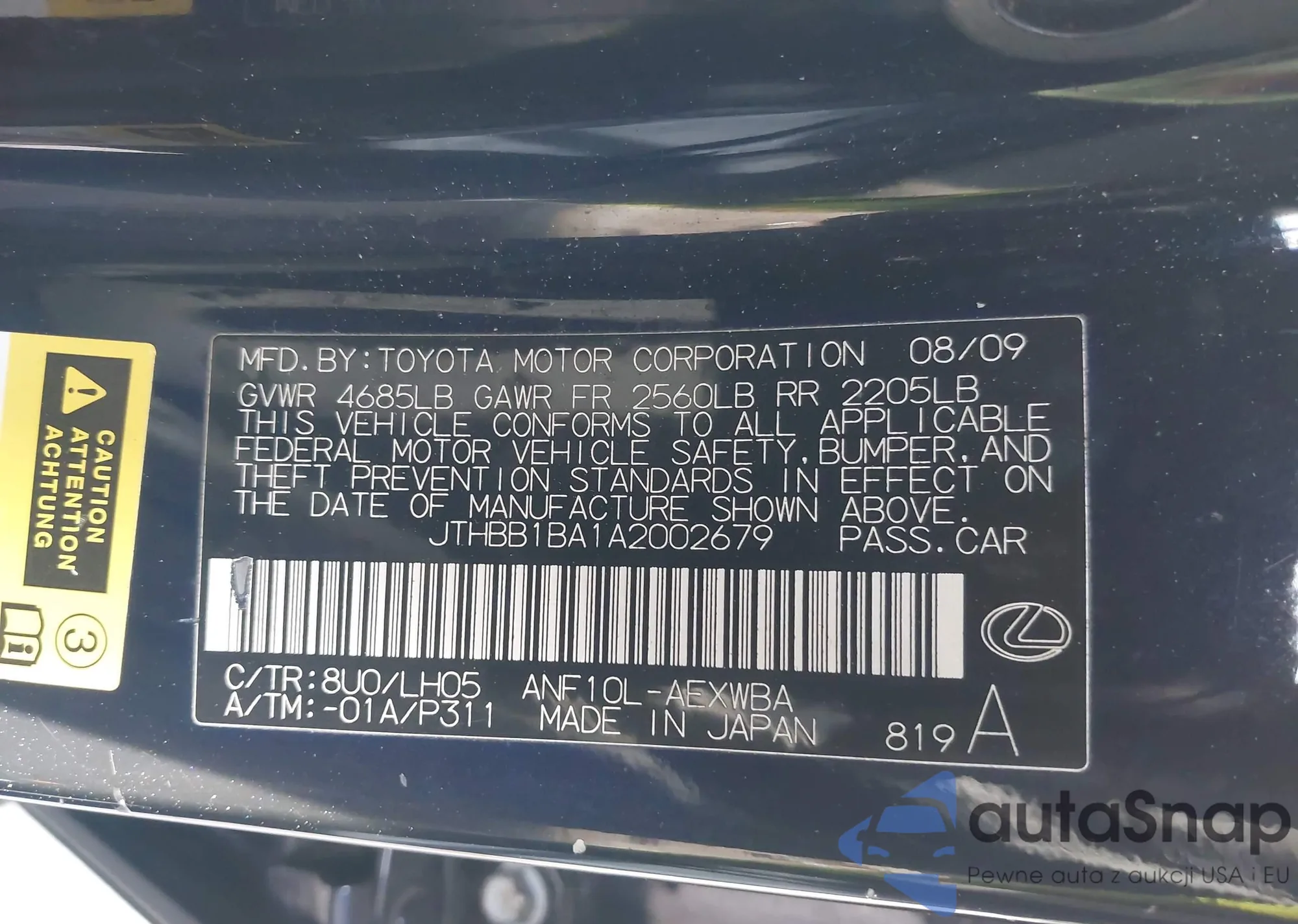 VIN: JTHBB1BA1A2002679