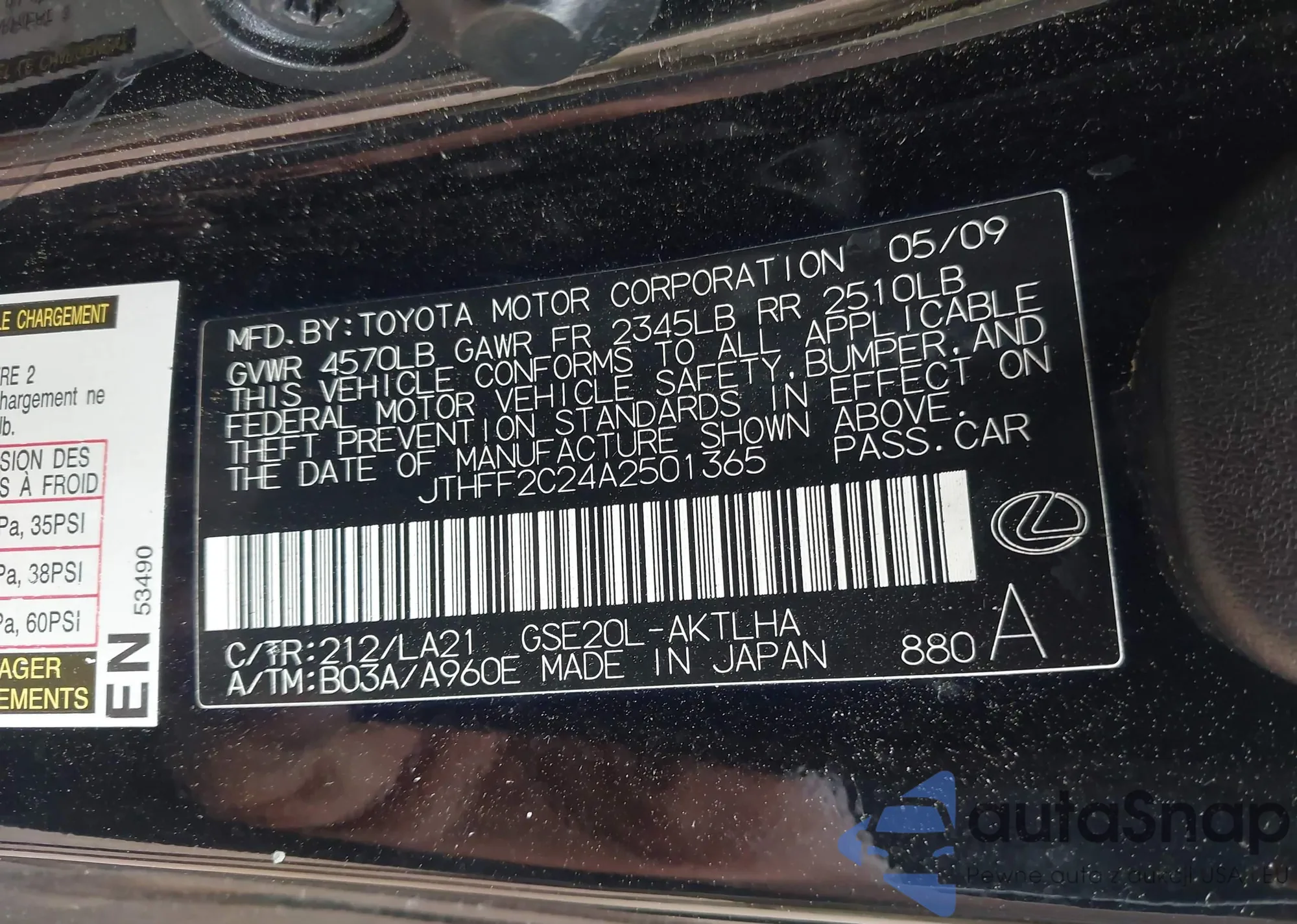 VIN: JTHFF2C24A2501365