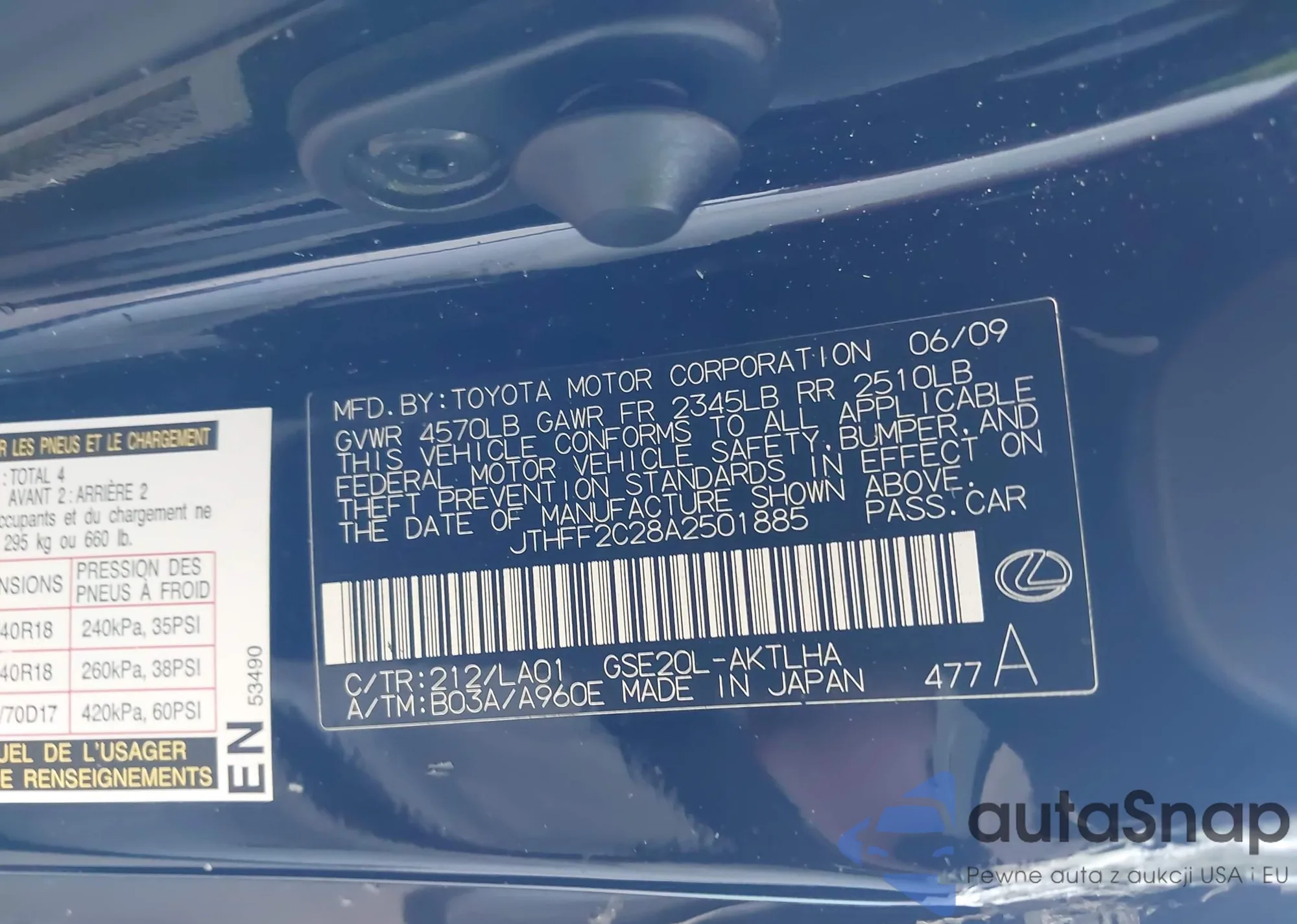 VIN: JTHFF2C28A2501885