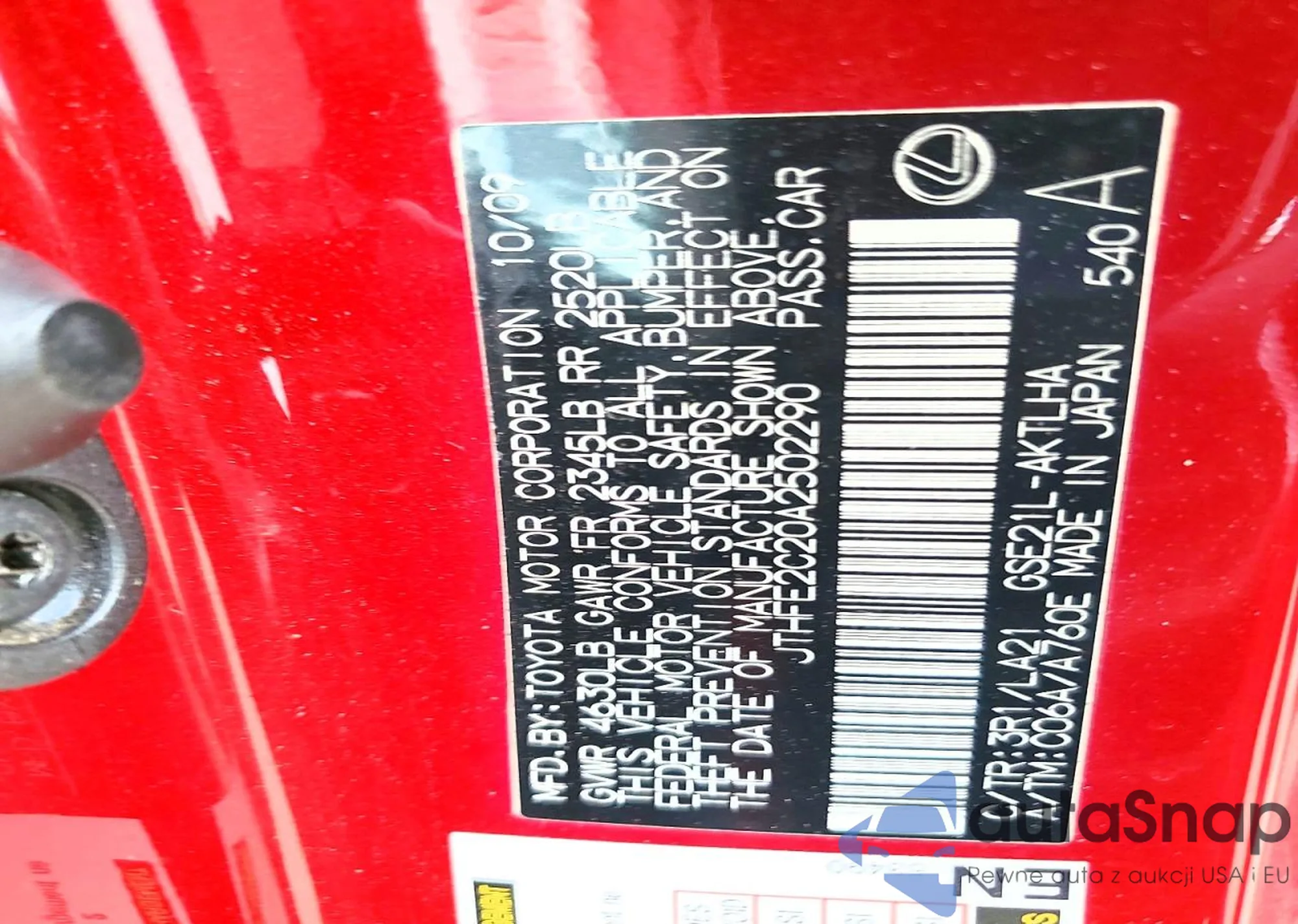 The car Lexus IS 2010 (VIN JTHFE2C20A2502290) has not been auctioned before. The documents are clean, and the mileage matches or is below the market average. Sold by an insurance company – we recommend purchase. Delivery to the port will take approx. 6–8 weeks.