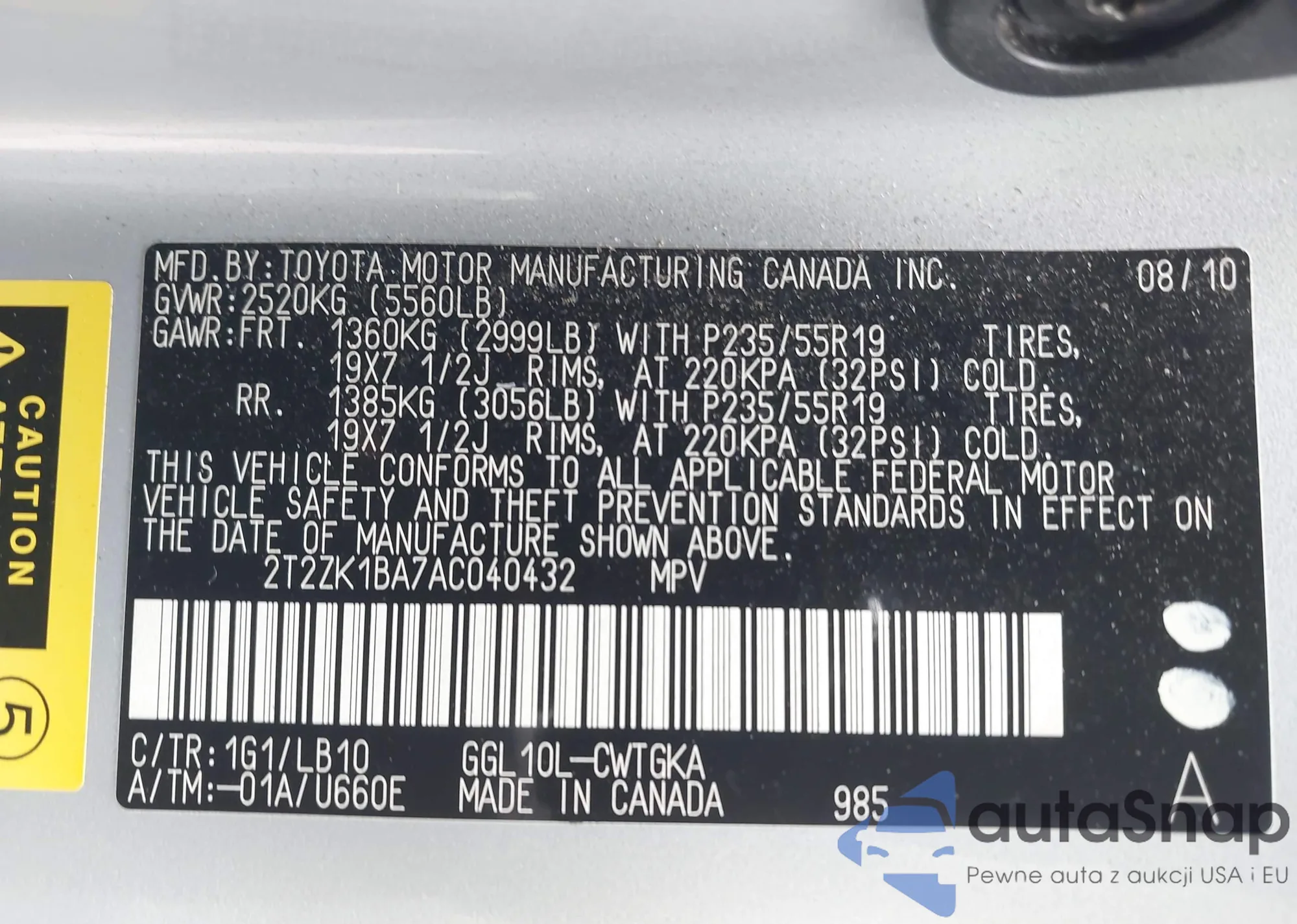 • VIN: 2T2ZK1BA7AC040432