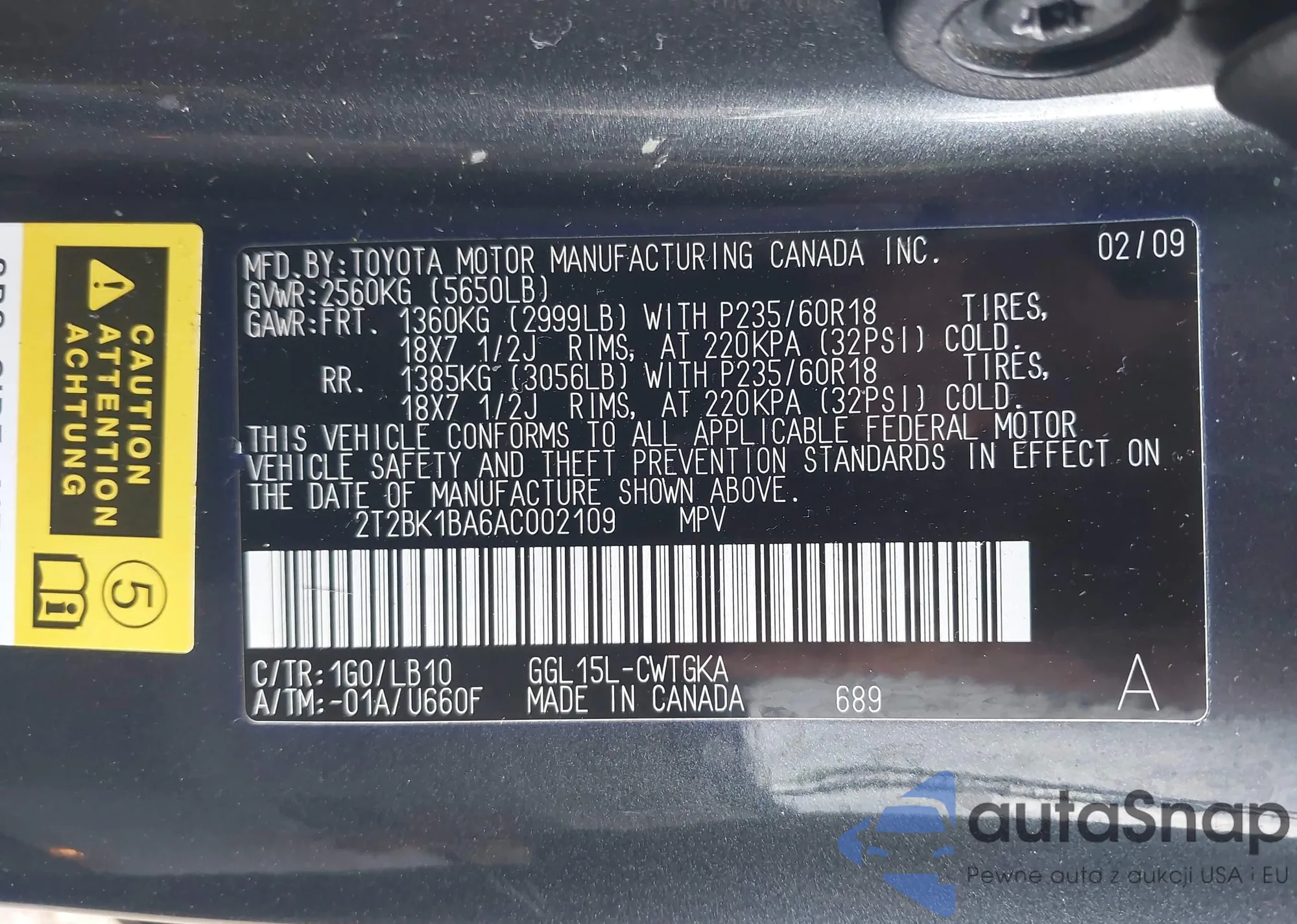 VIN: 2T2BK1BA6AC002109