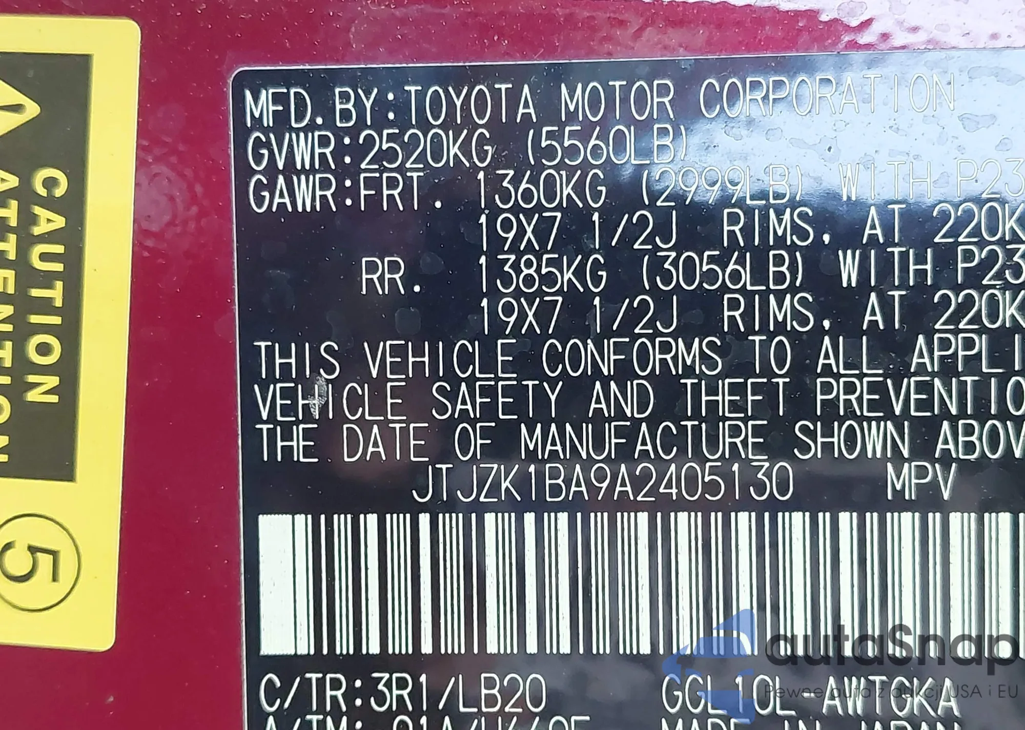 VIN: JTJZK1BA9A2405130