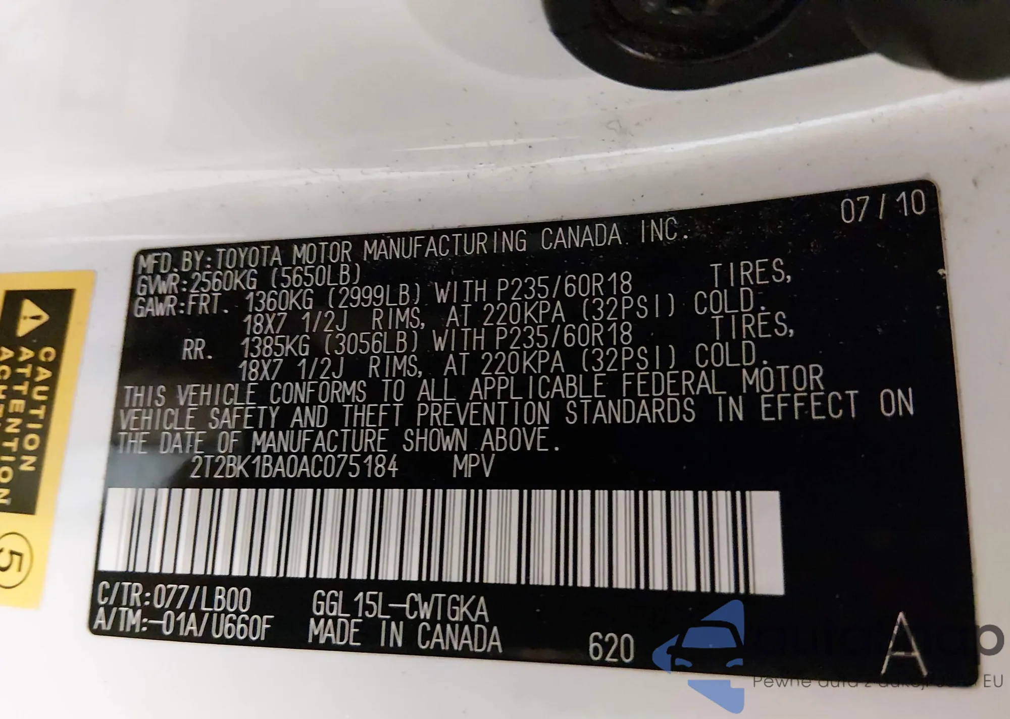 VIN: 2T2BK1BA0AC075184