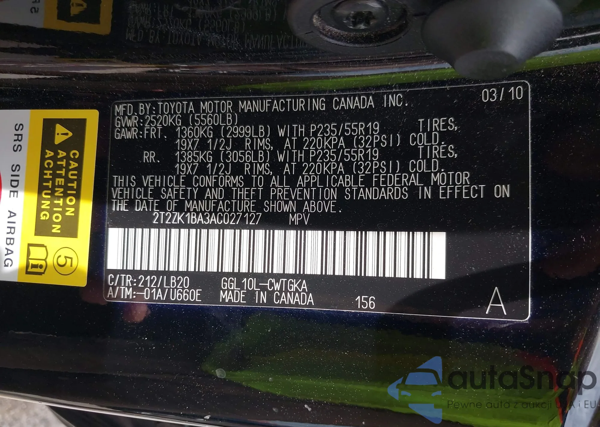VIN: 2T2ZK1BA3AC027127