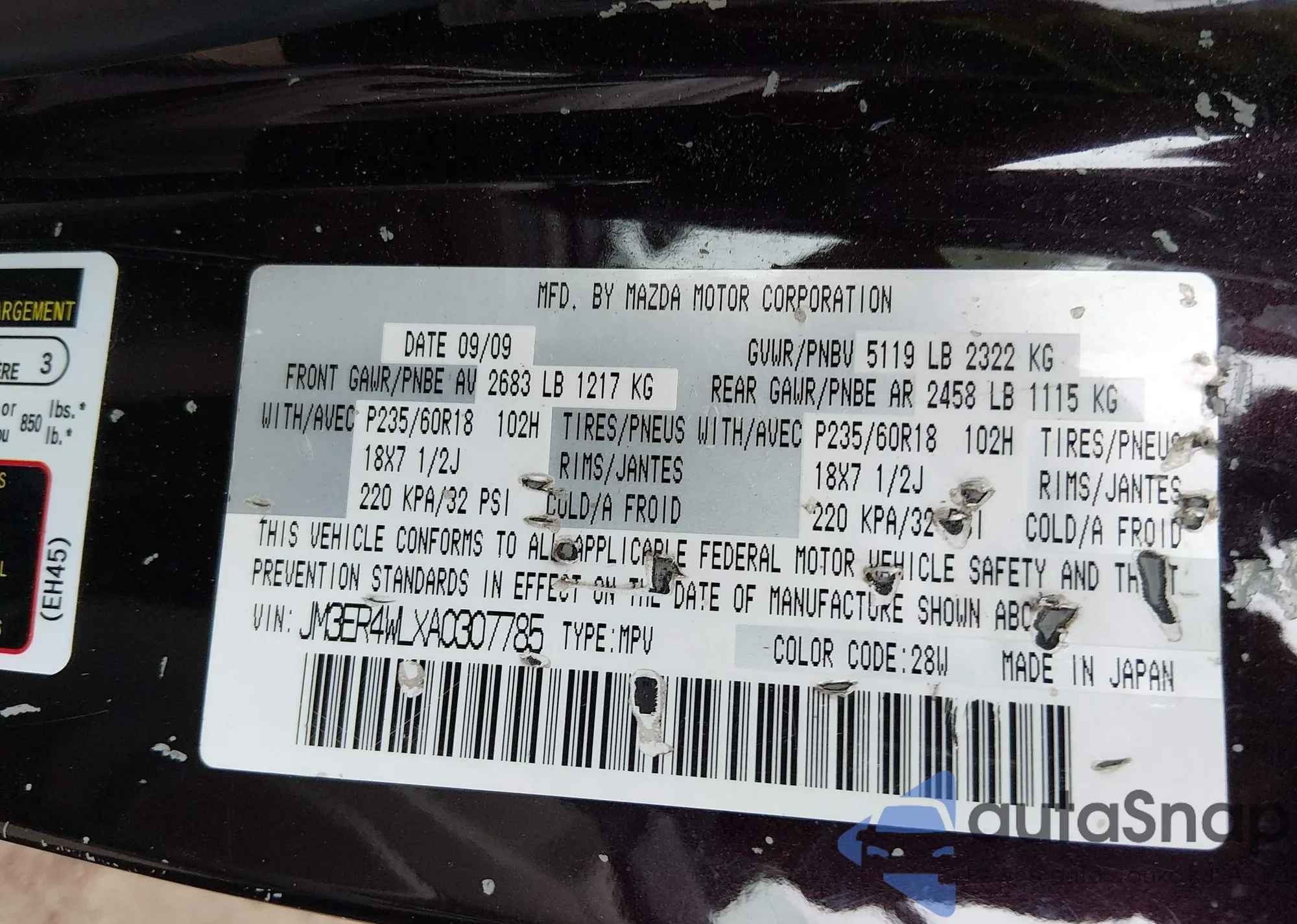 The car Mazda CX-7 2010 (VIN JM3ER4WLXA0307785) has not been auctioned before. The documents are clean, and the mileage matches or is below the market average. Sold by an insurance company – we recommend purchase. Delivery to the port will take approx. 6–8 weeks.