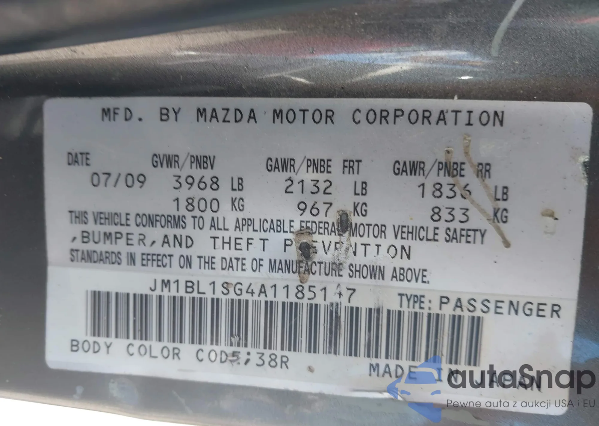 VIN: JM1BL1SG4A1185147