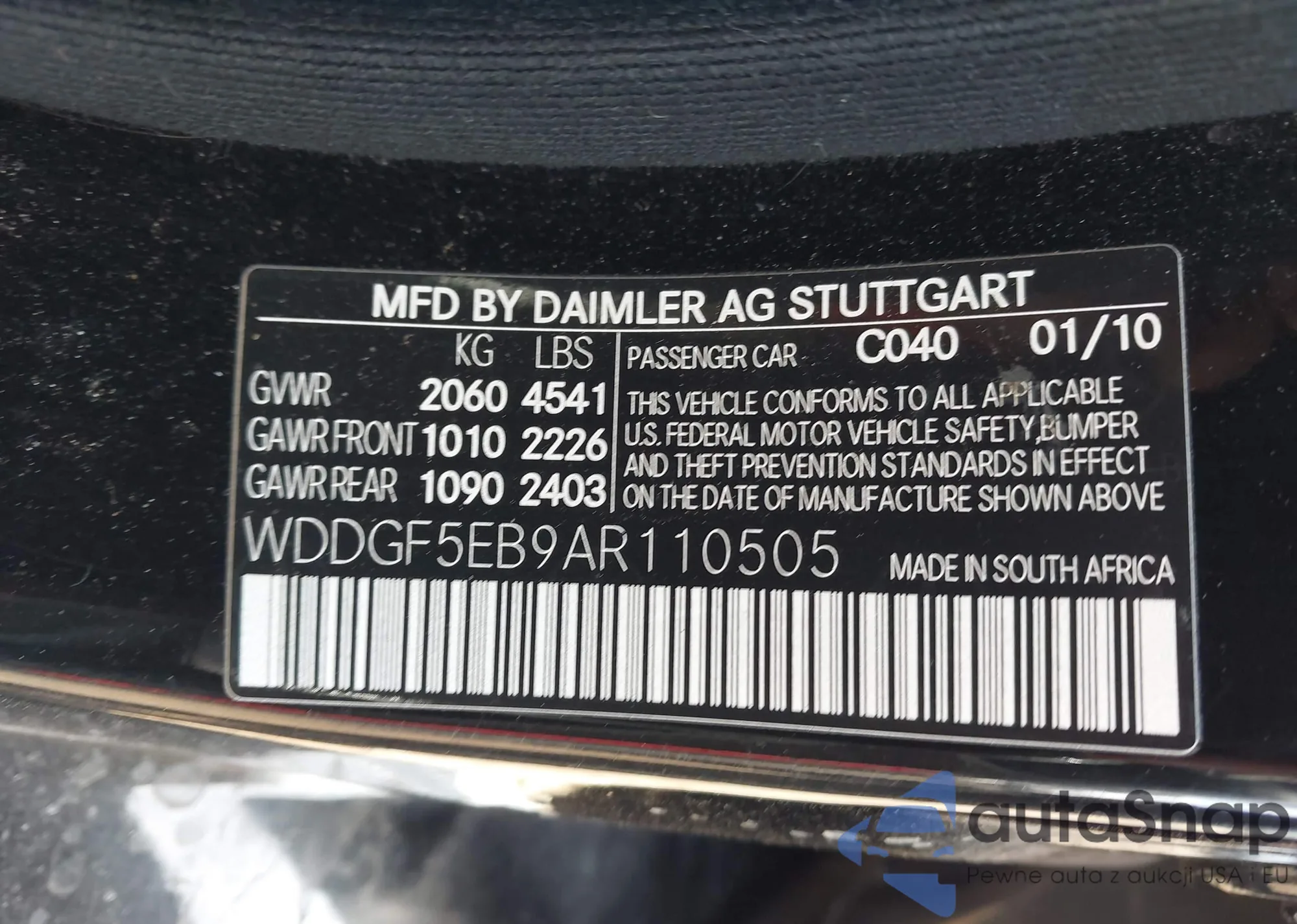 The car Mercedes-Benz C-klasse 2010 (VIN WDDGF5EB9AR110505) has not been auctioned before. The documents are clean, and the mileage matches or is below the market average. Sold by an insurance company – we recommend purchase. Delivery to the port will take approx. 6–8 weeks.