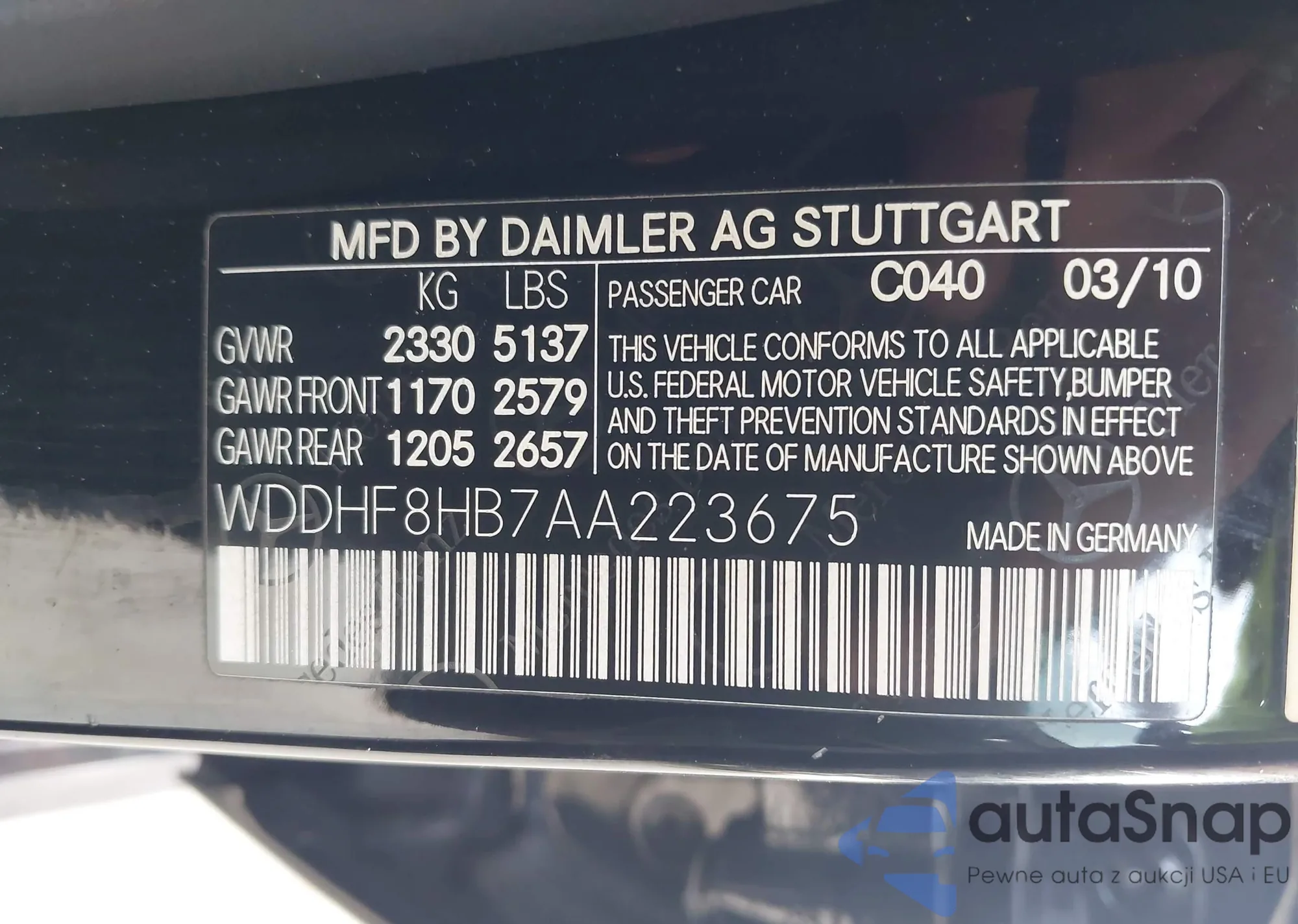 VIN: WDDHF8HB7AA223675