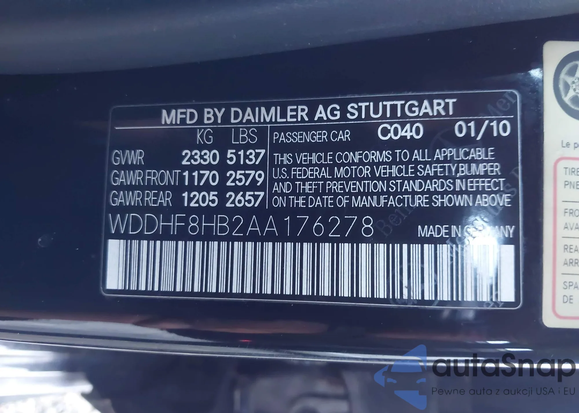 VIN: WDDHF8HB2AA176278