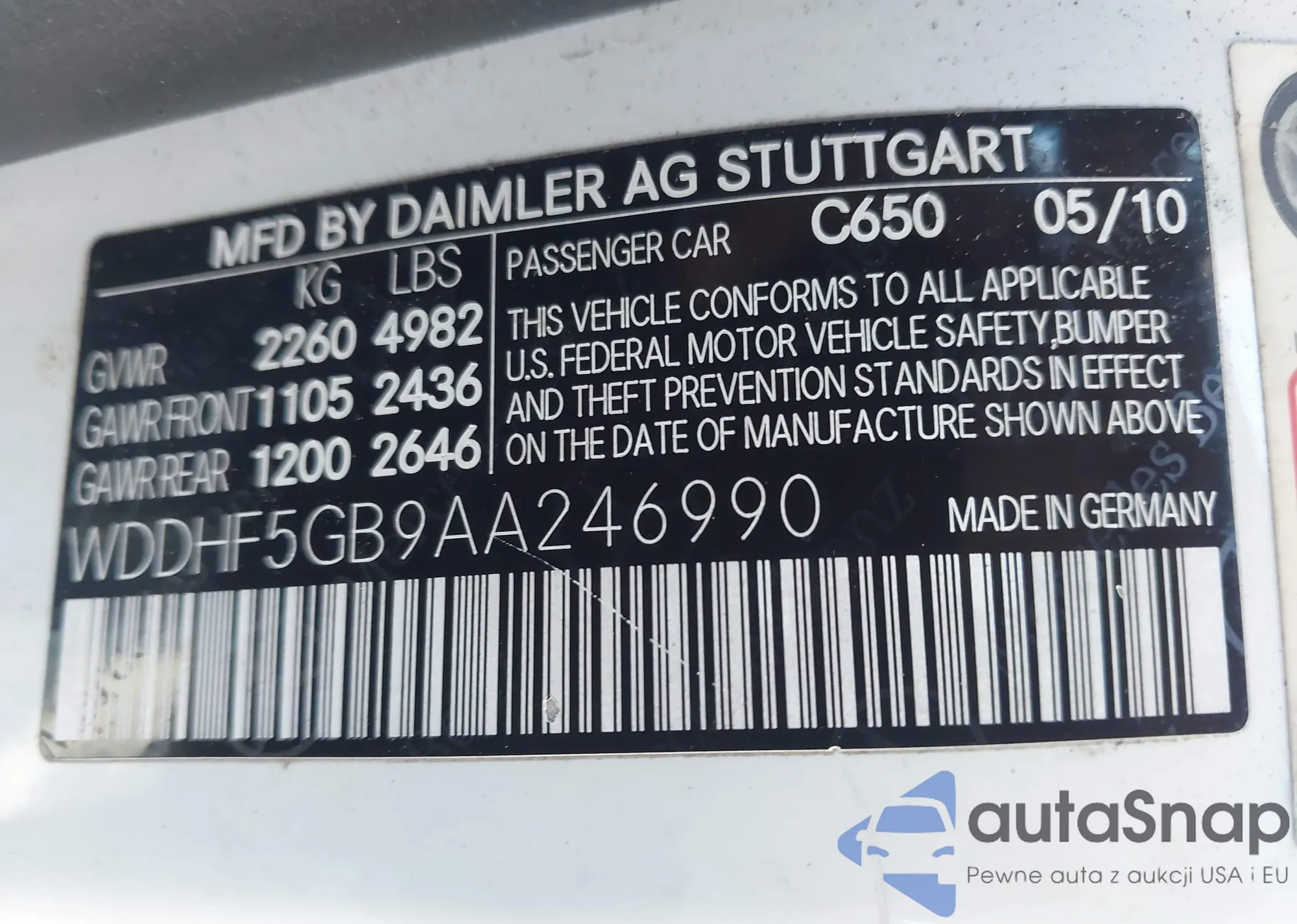 VIN: WDDHF5GB9AA246990