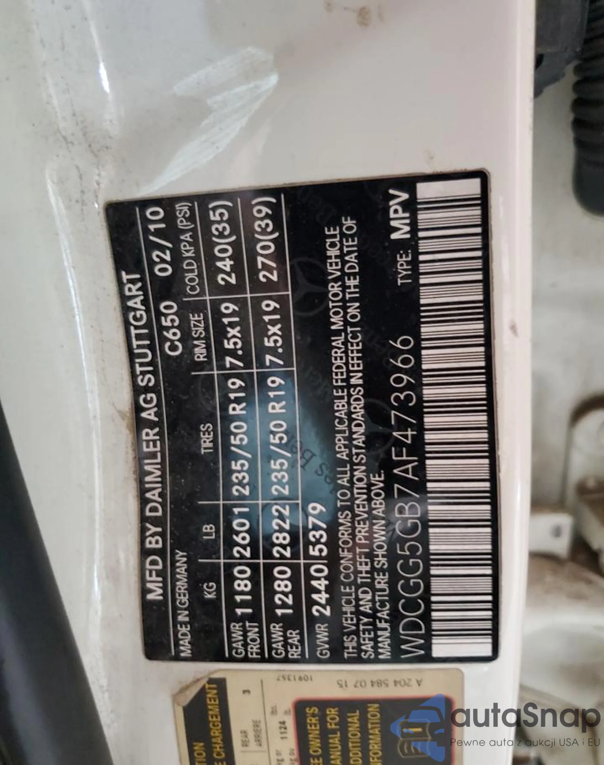 VIN: WDCGG5GB7AF473966