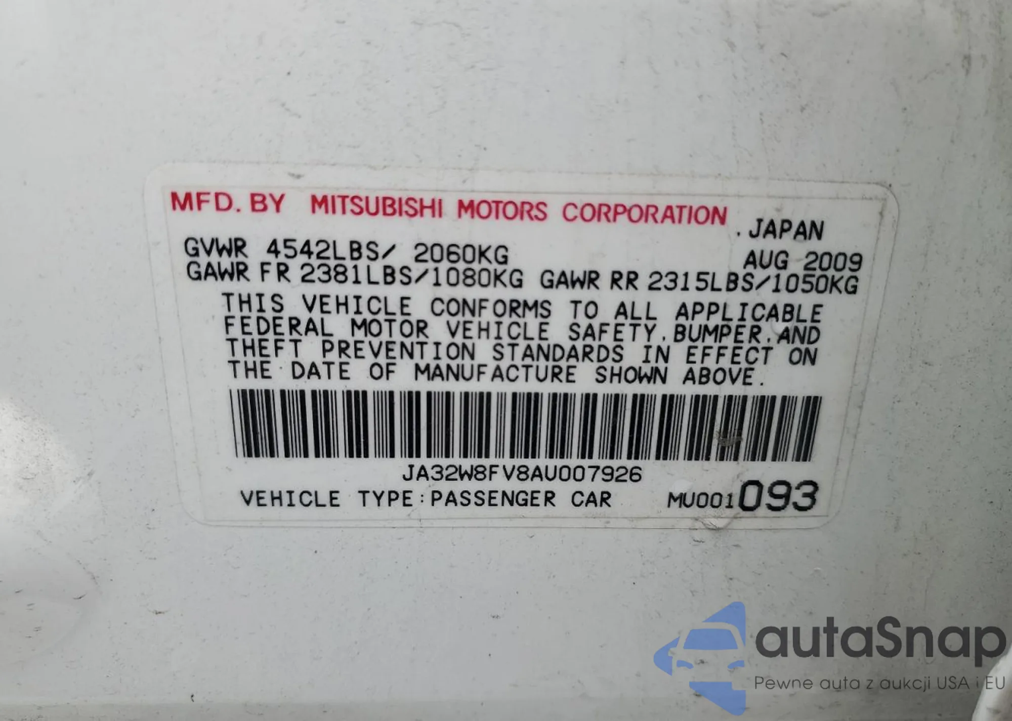 VIN: JA32W8FV8AU007926