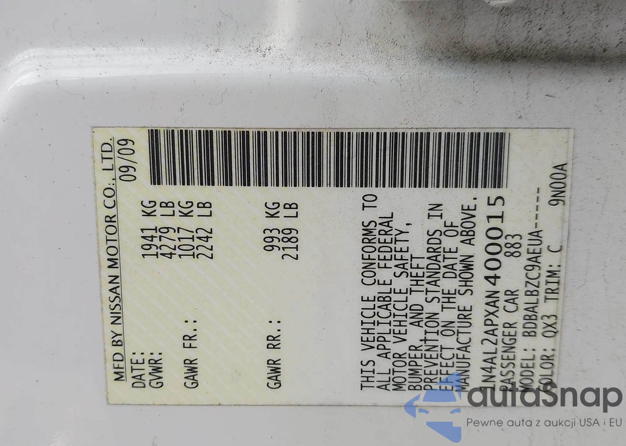 VIN: 1N4AL2APXAN400015