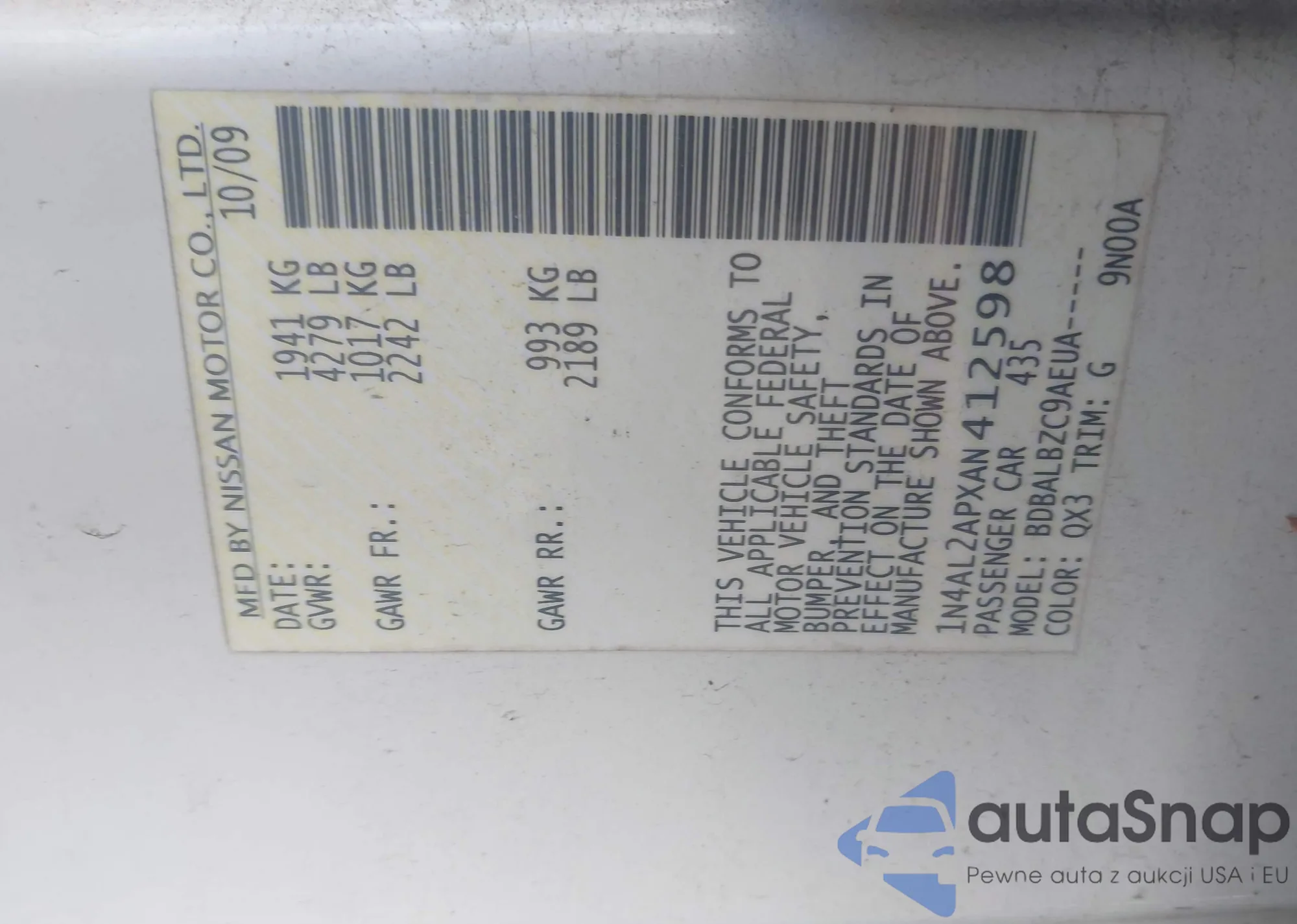 VIN: 1N4AL2APXAN412598