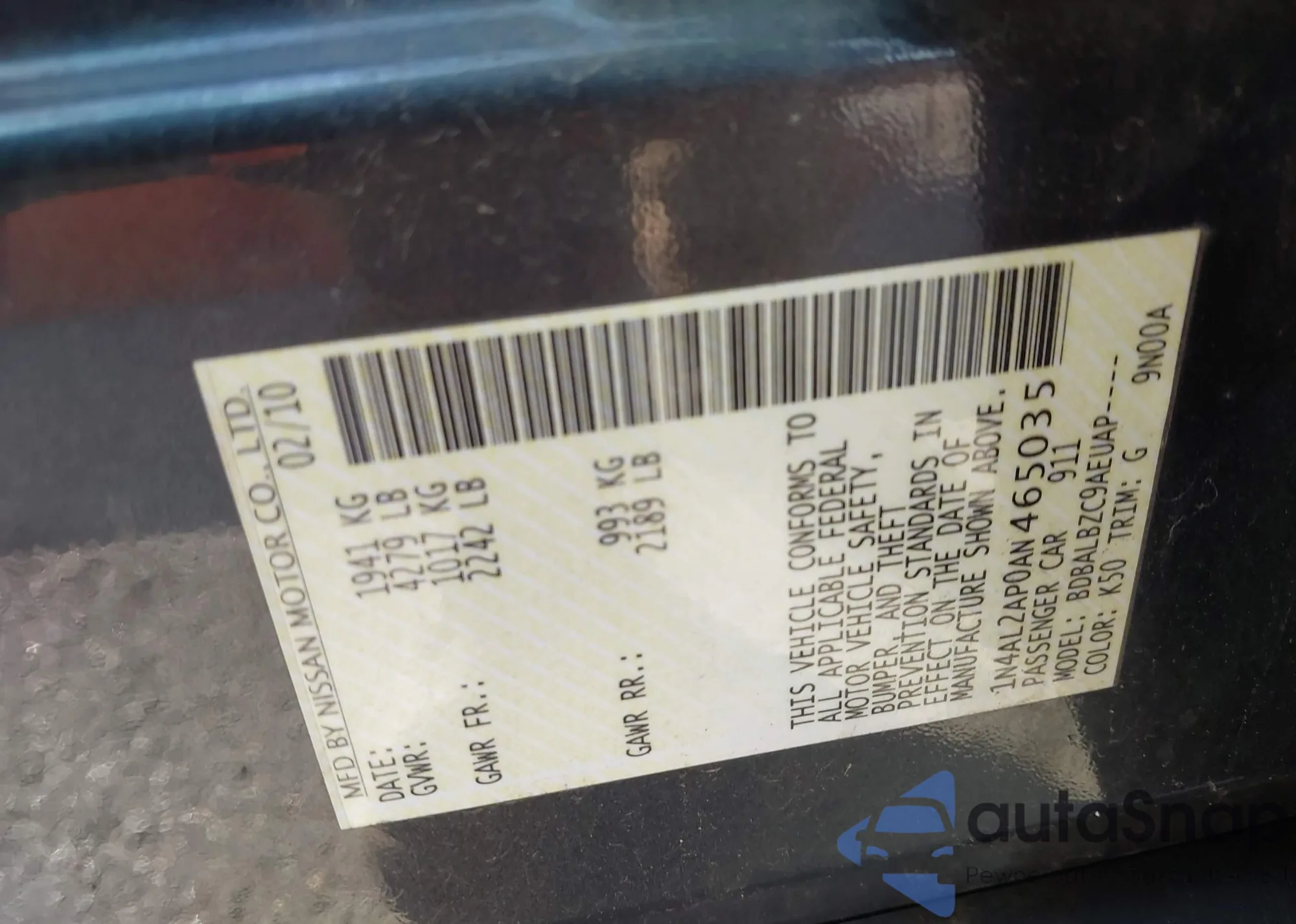 VIN: 1N4AL2AP0AN465035