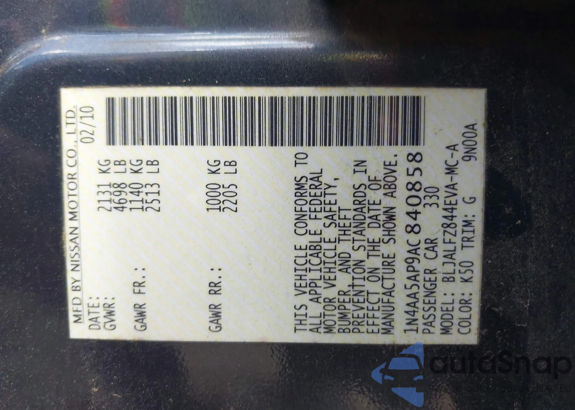 VIN: 1N4AA5AP9AC840858
