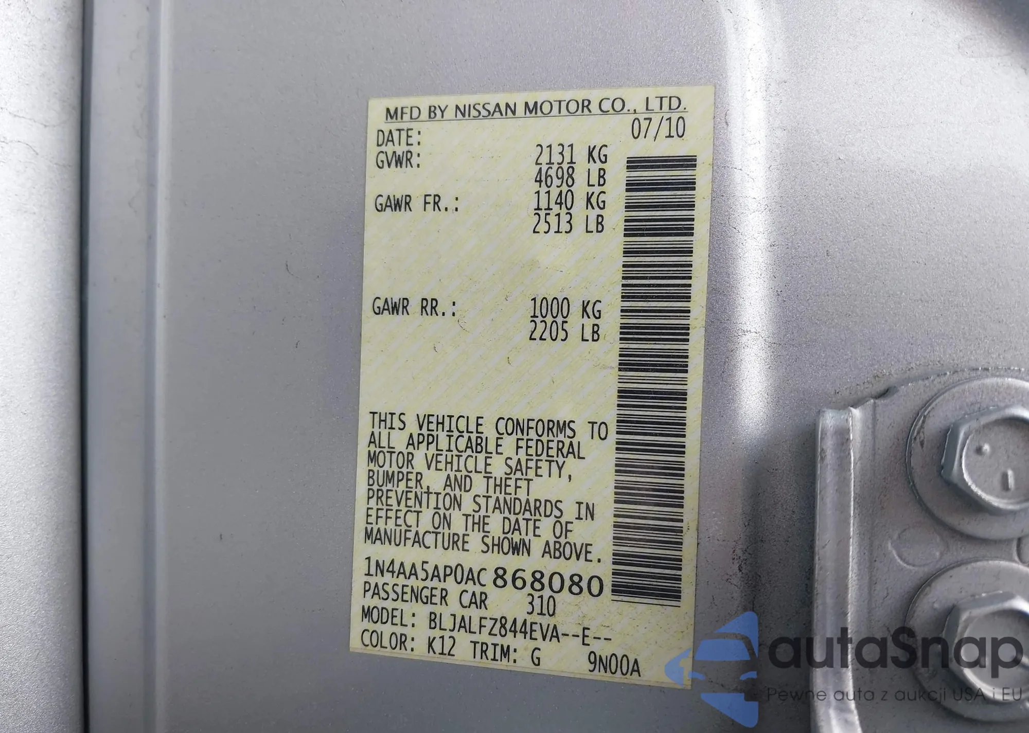 VIN: 1N4AA5AP0AC868080