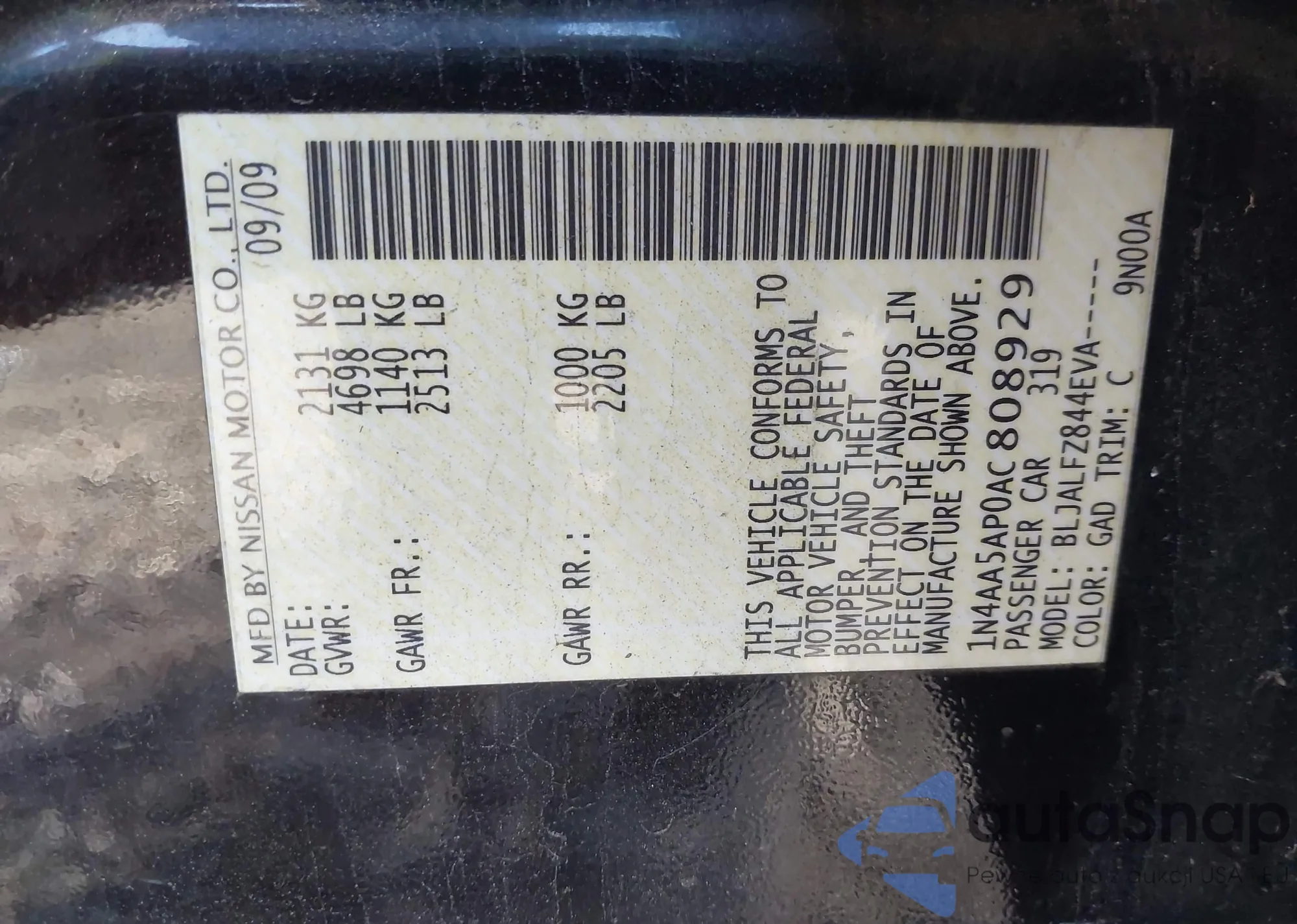 VIN: 1N4AA5AP0AC808929