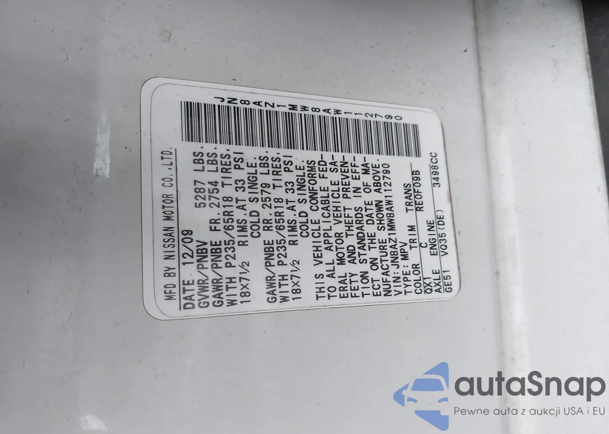 VIN: JN8AZ1MW8AW112790