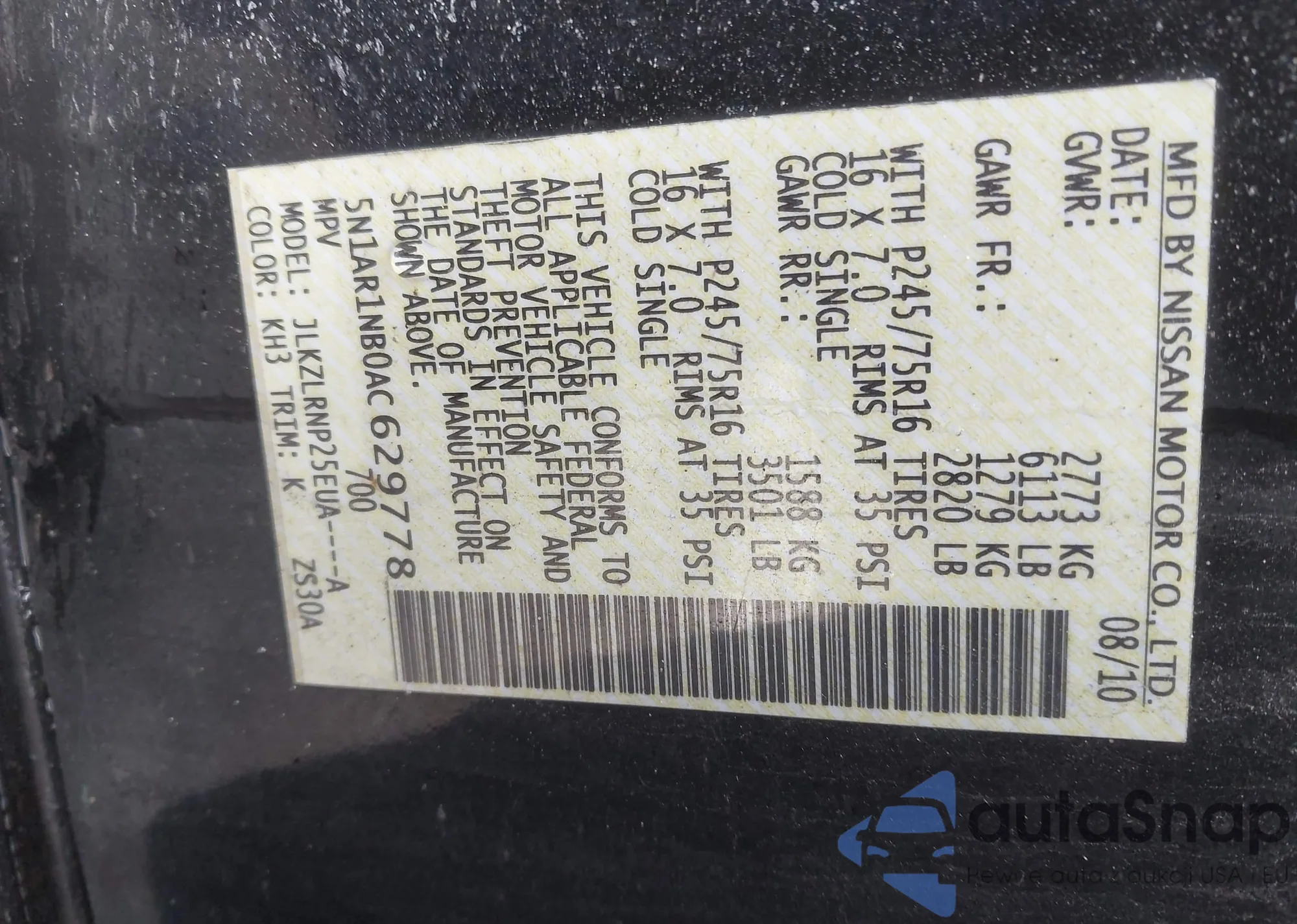The car Nissan Pathfinder 2010 (VIN 5N1AR1NB0AC629778) is sold by an unverified seller. We recommend checking the Carfax report and confirming registration possibilities before purchase.