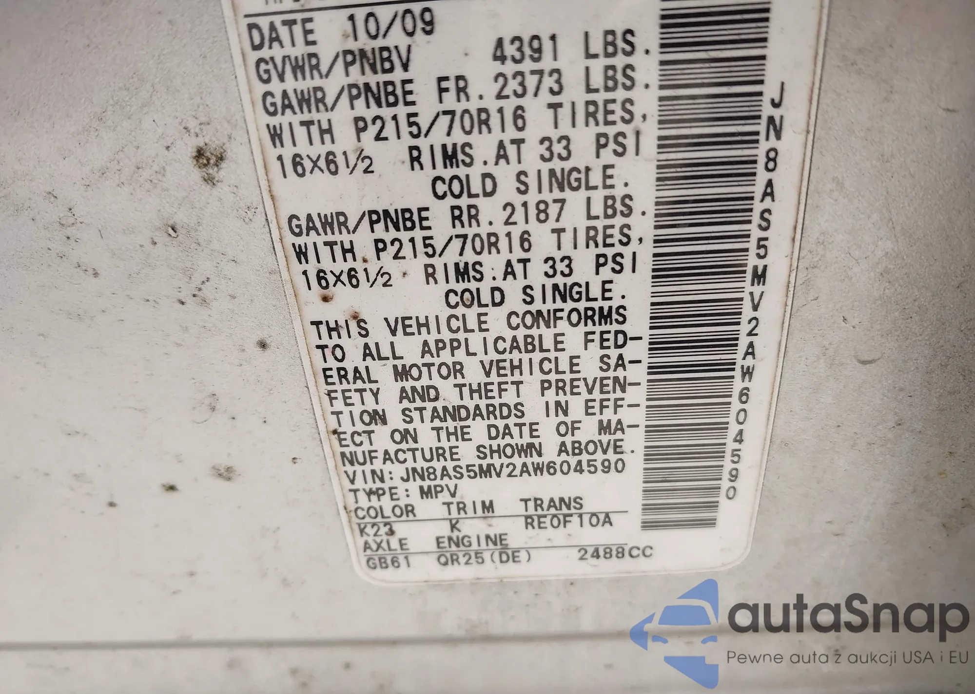 VIN: JN8AS5MV2AW604590