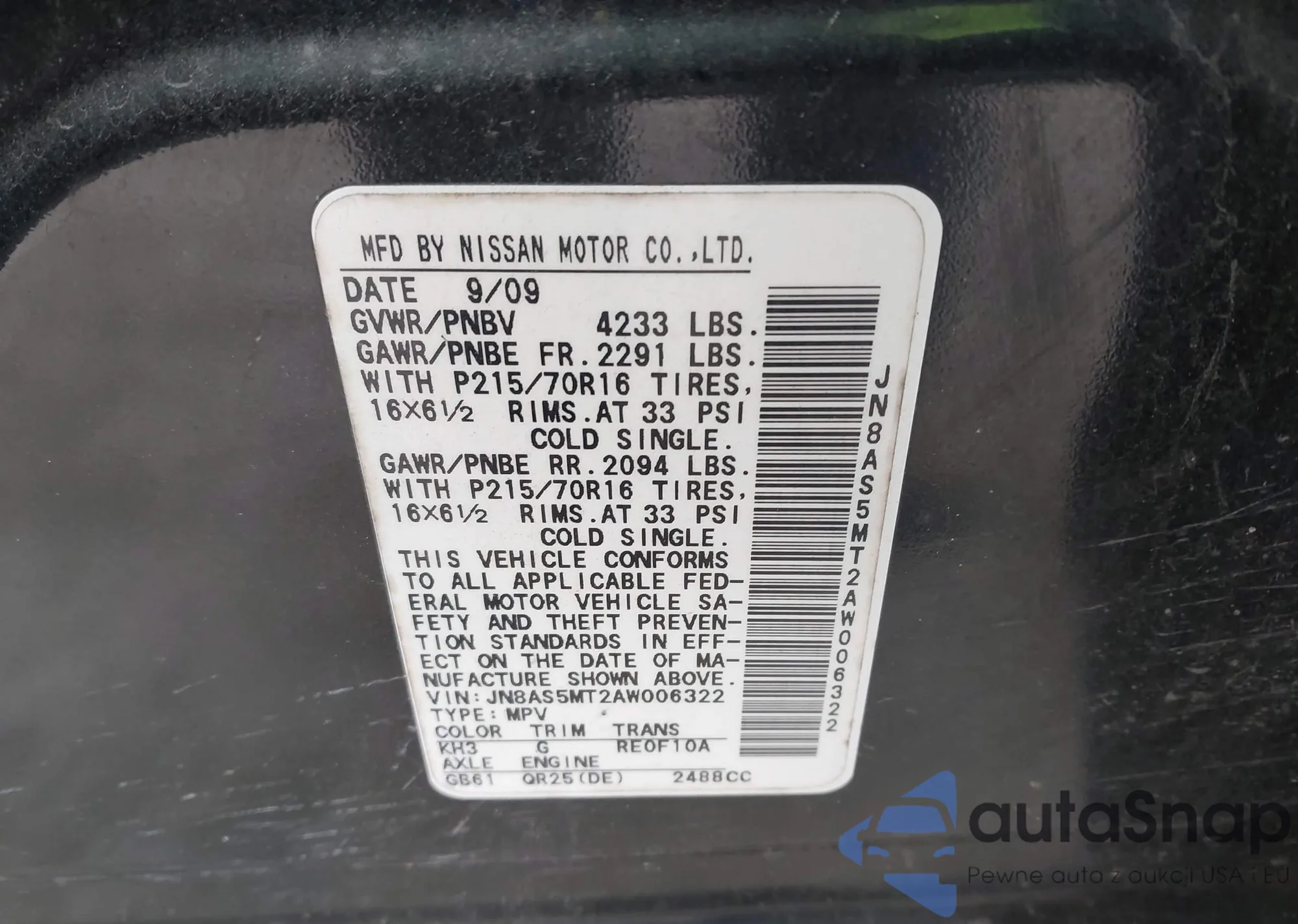 • VIN: JN8AS5MT2AW006322