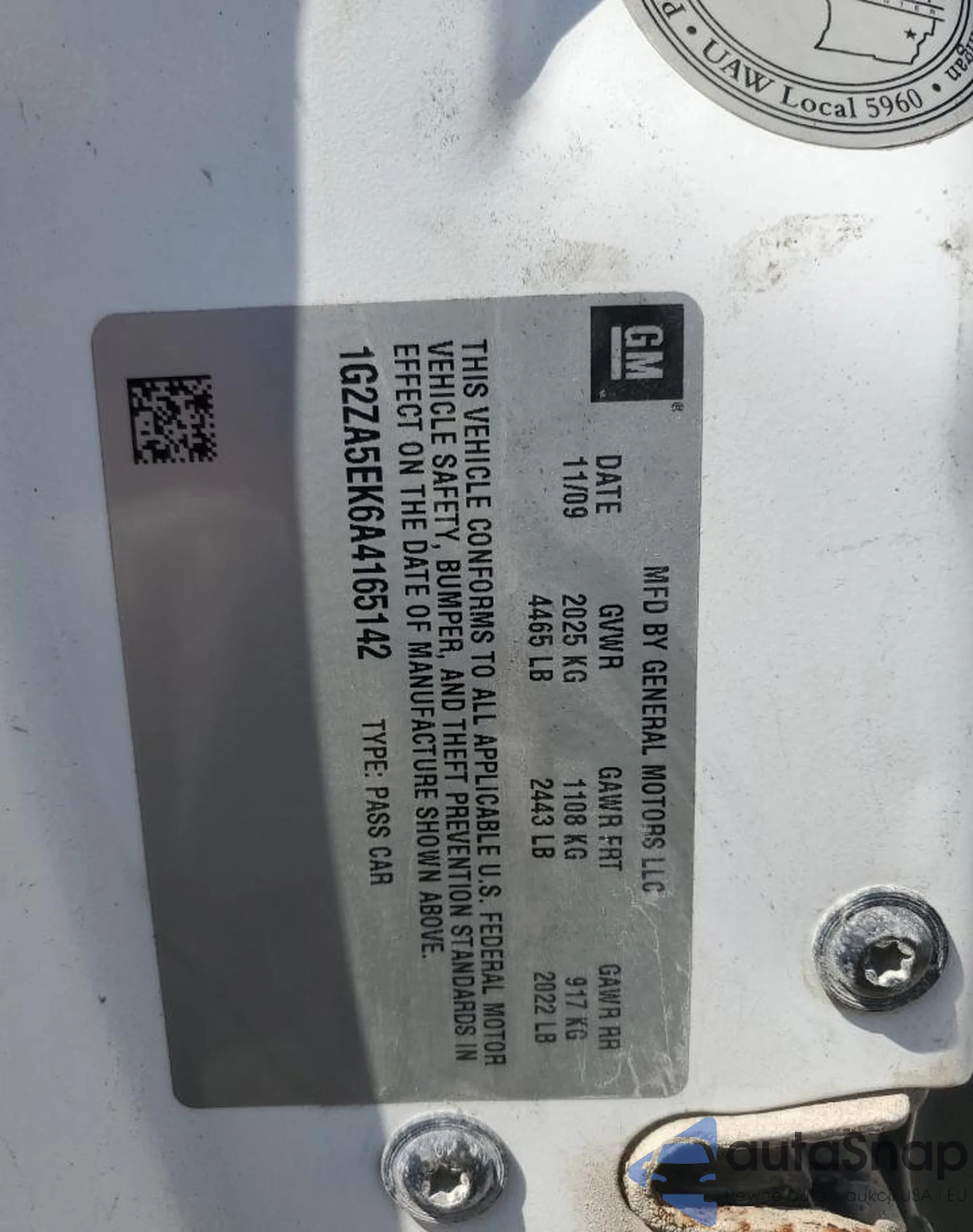 VIN: 1G2ZA5EK6A4165142
