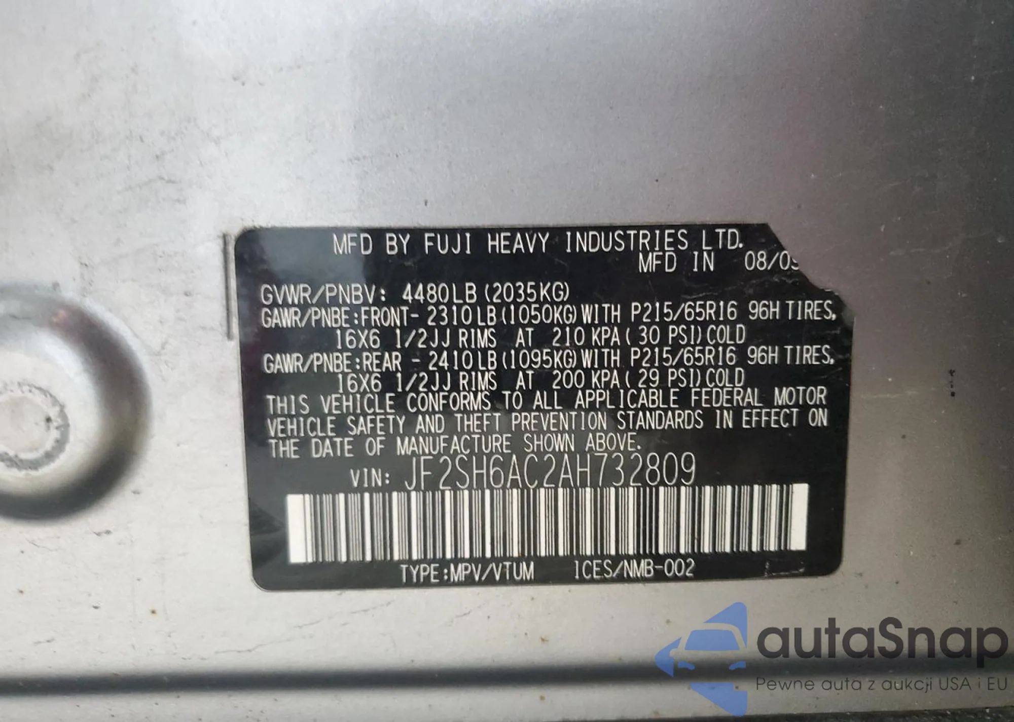 VIN: JF2SH6AC2AH732809