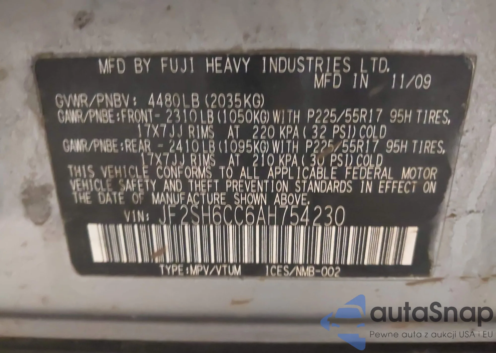 VIN: JF2SH6CC6AH754230