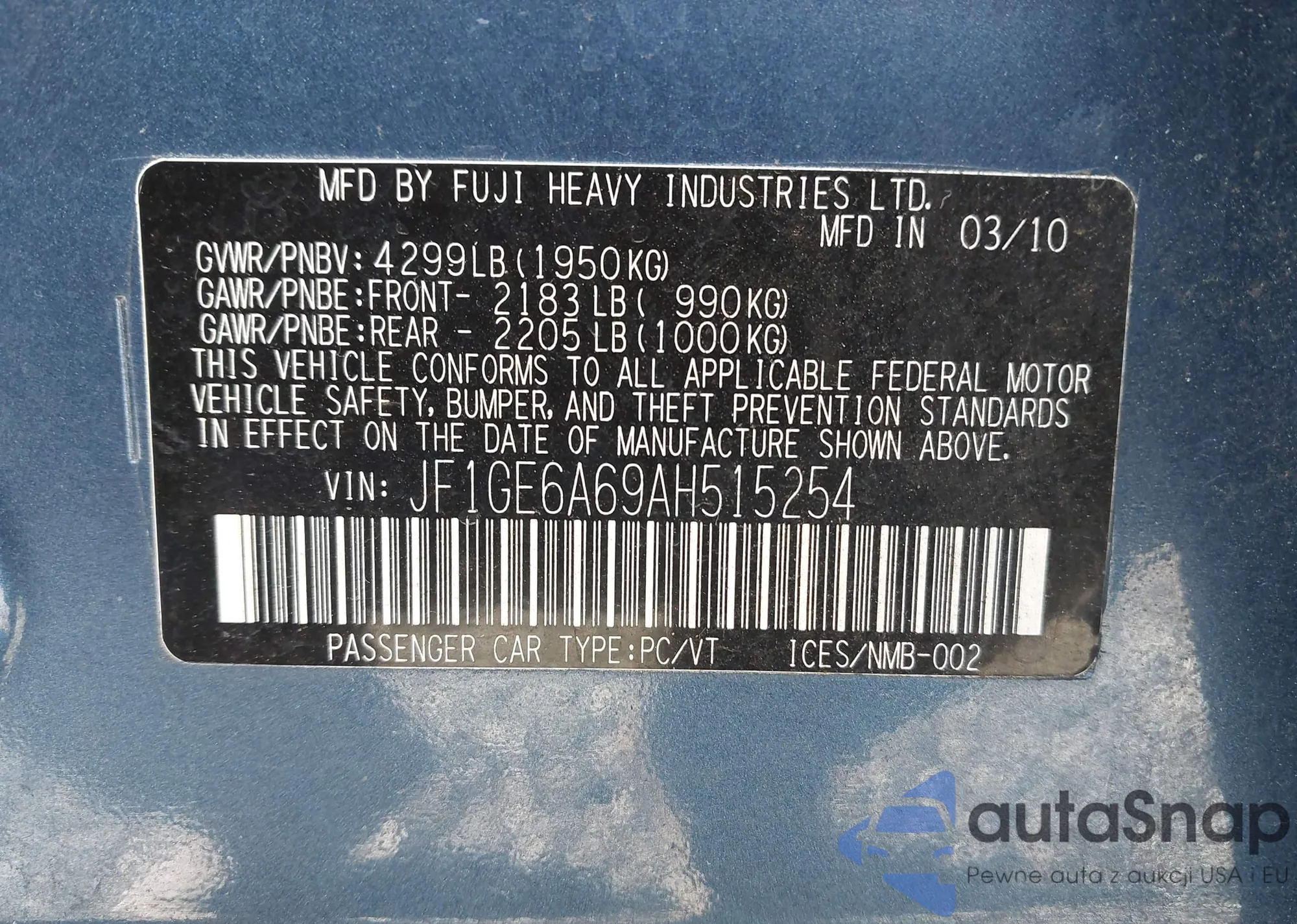VIN: JF1GE6A69AH515254