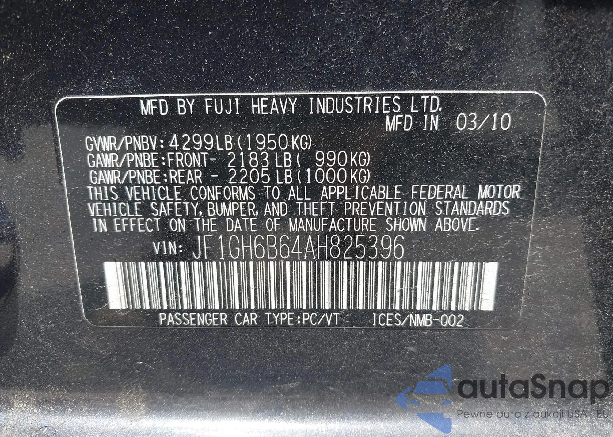 VIN: JF1GH6B64AH825396