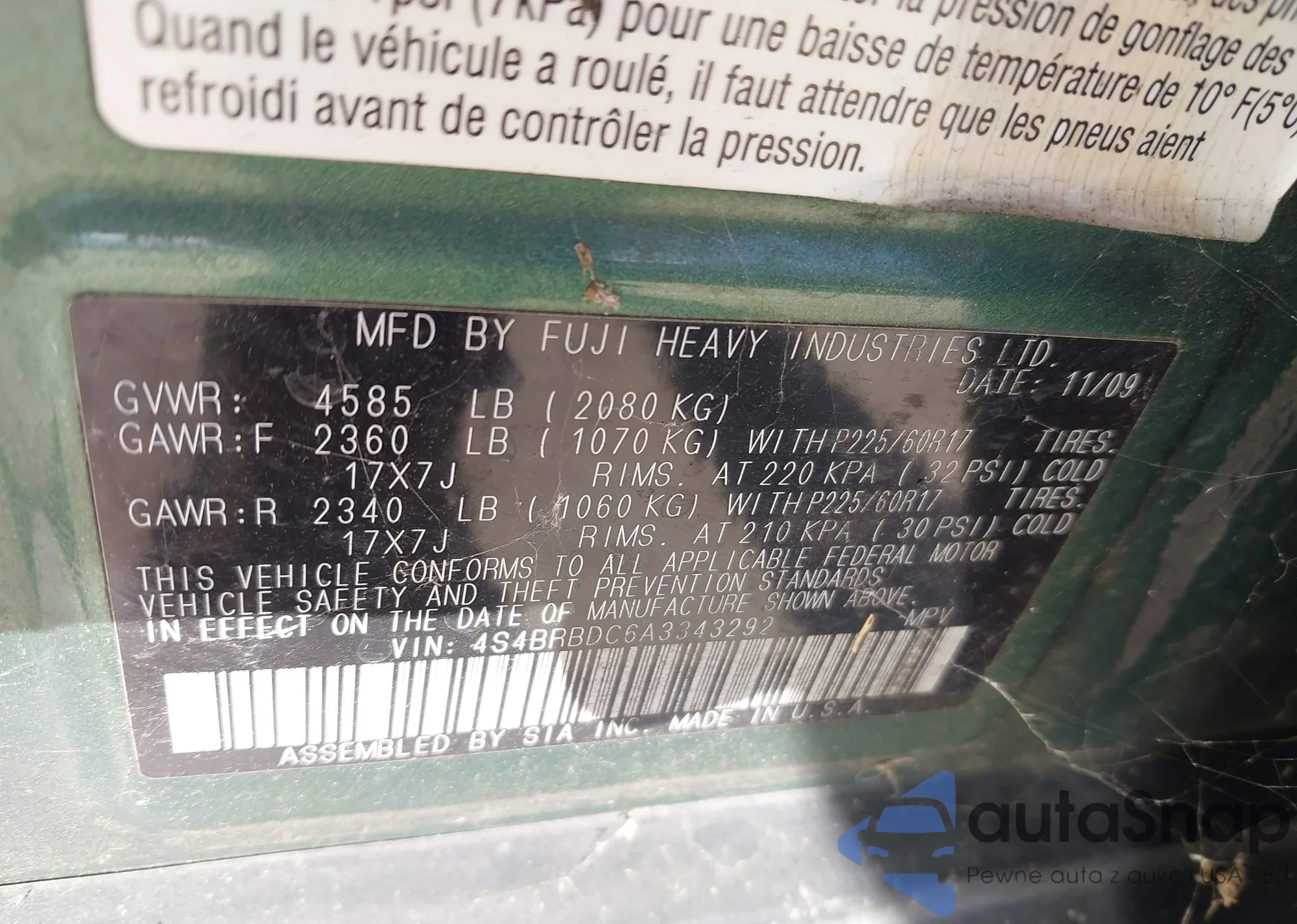 VIN: 4S4BRBDC6A3343292