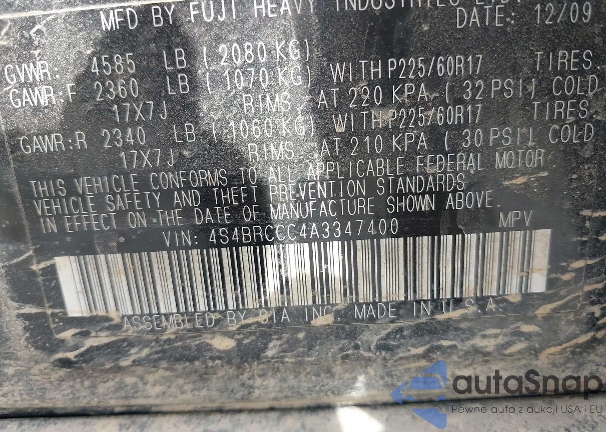 VIN: 4S4BRCCC4A3347400