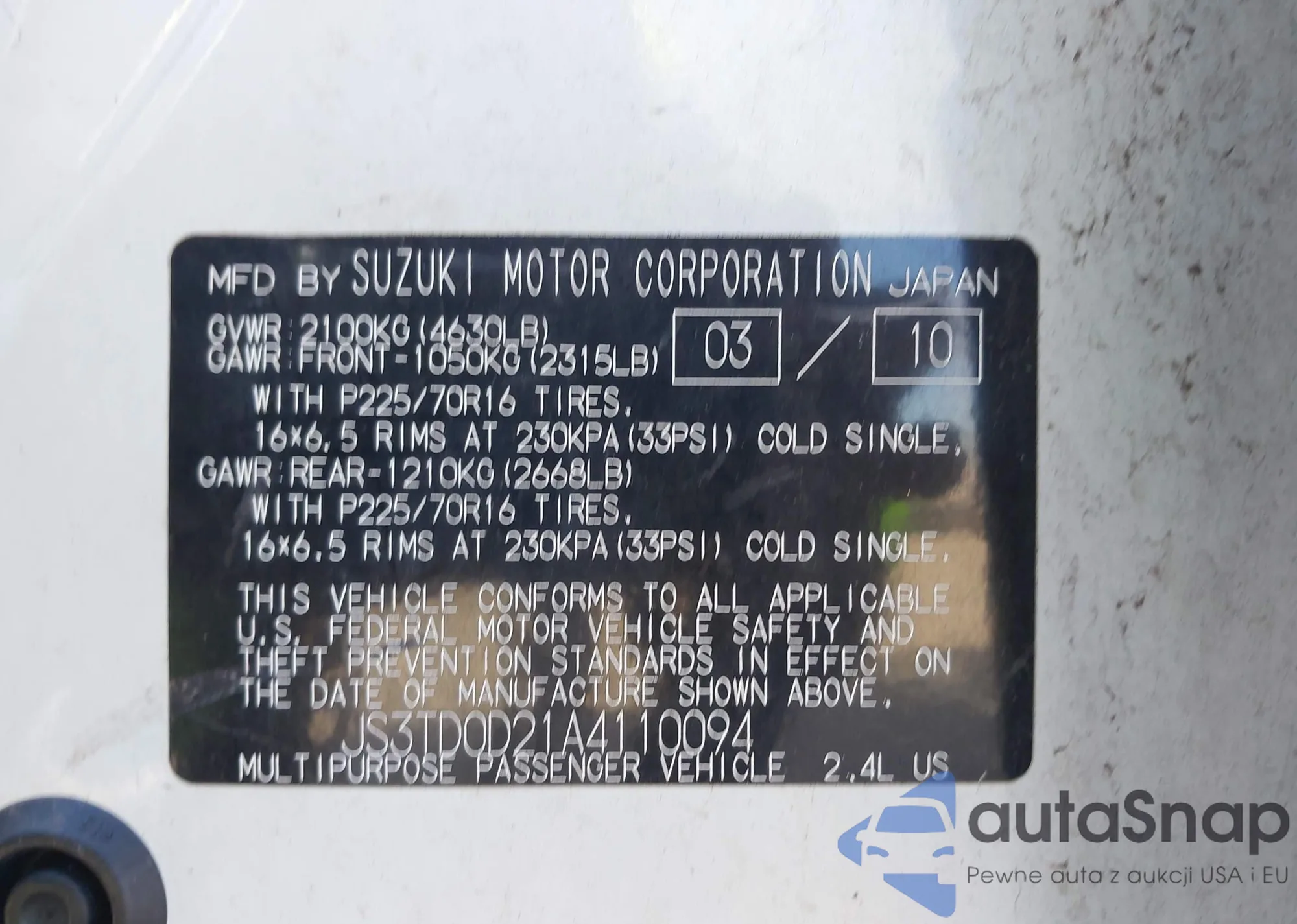 The car Suzuki Grand Vitara 2010 (VIN JS3TD0D21A4110094) is sold by an unverified seller. We recommend checking the Carfax report and confirming registration possibilities before purchase.