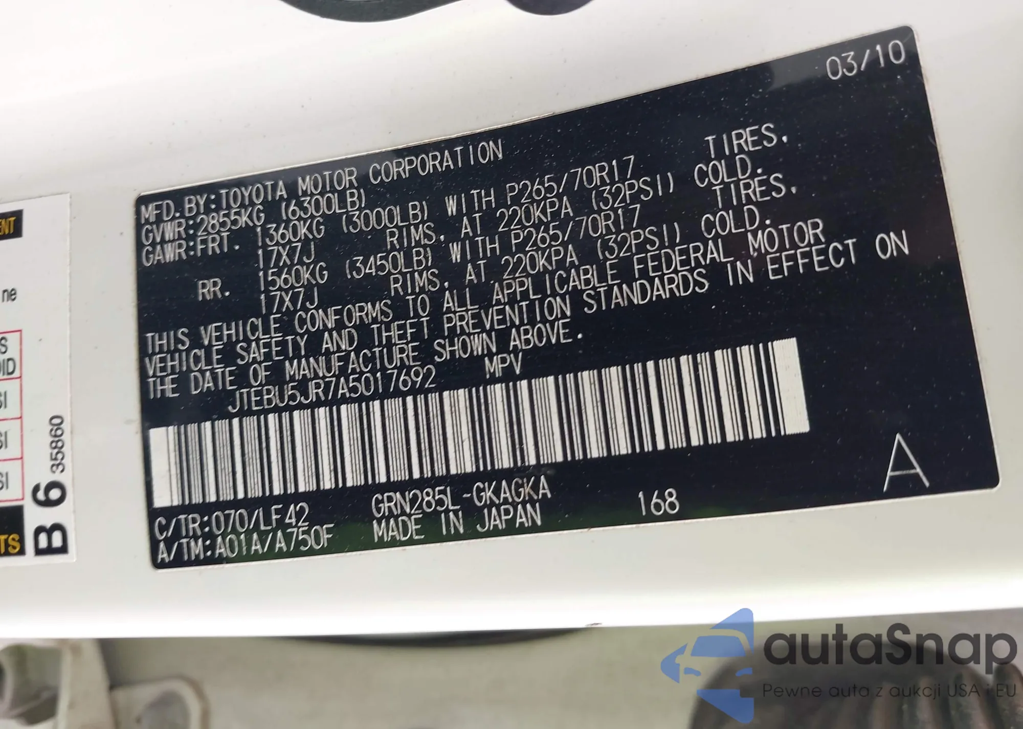 VIN: JTEBU5JR7A5017692