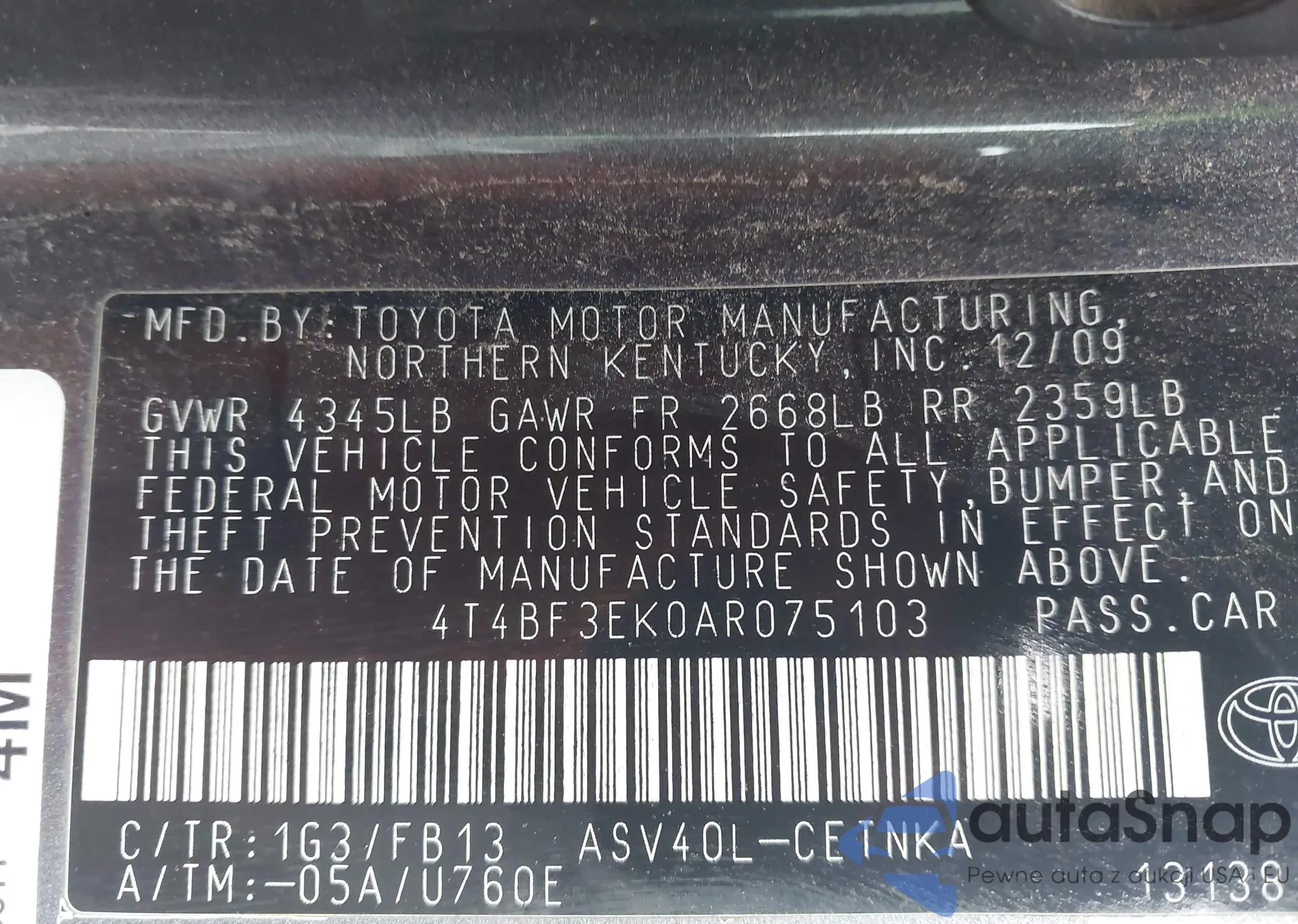 VIN: 4T4BF3EK0AR075103