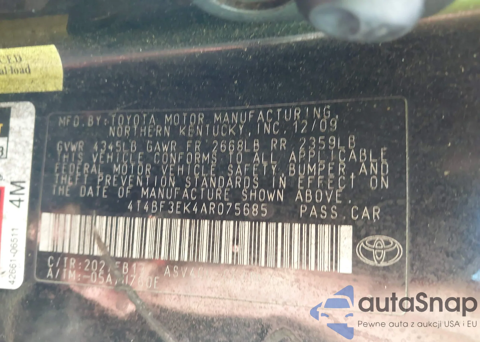 • VIN: 4T4BF3EK4AR075685