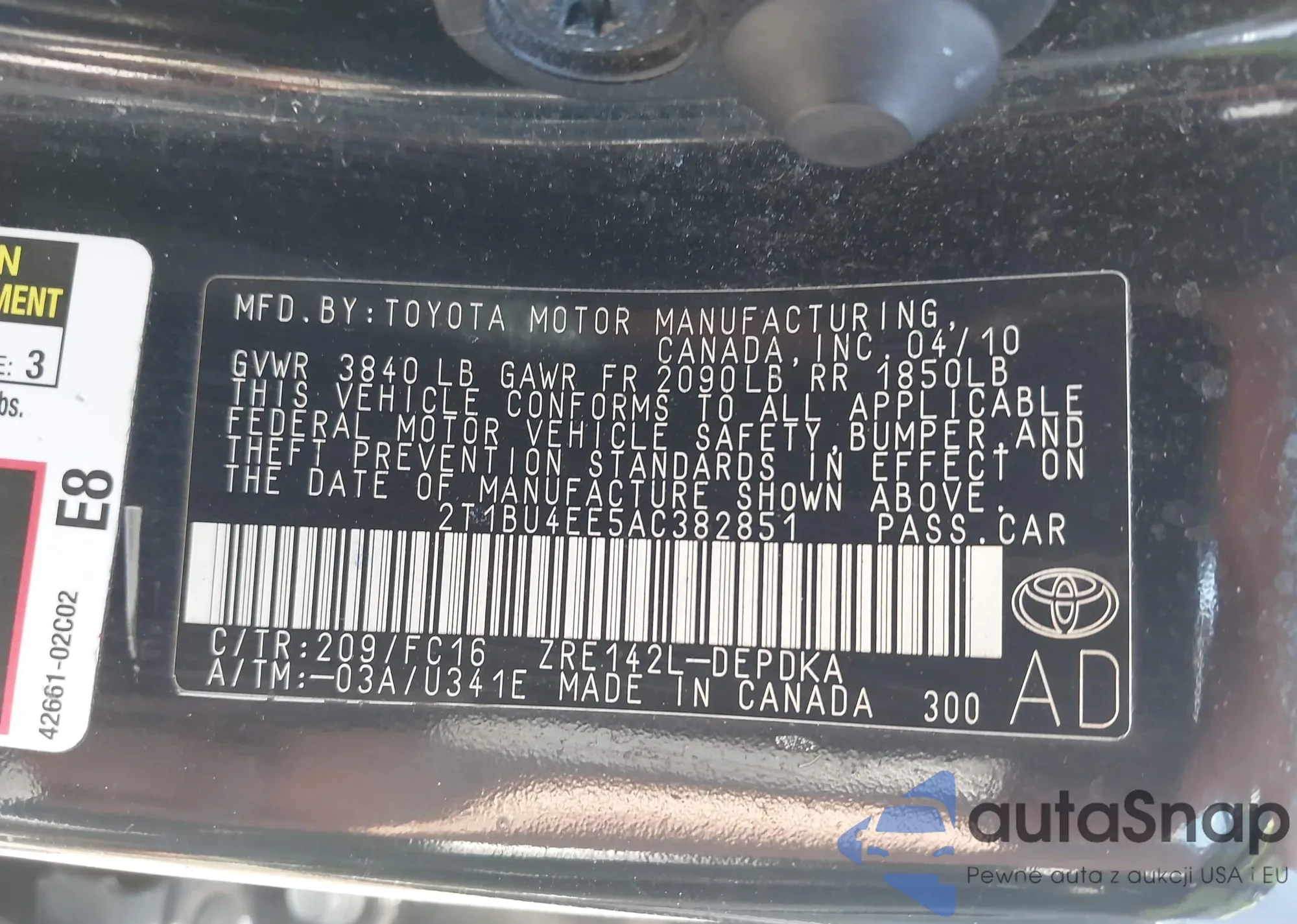 • VIN: 2T1BU4EE5AC382851