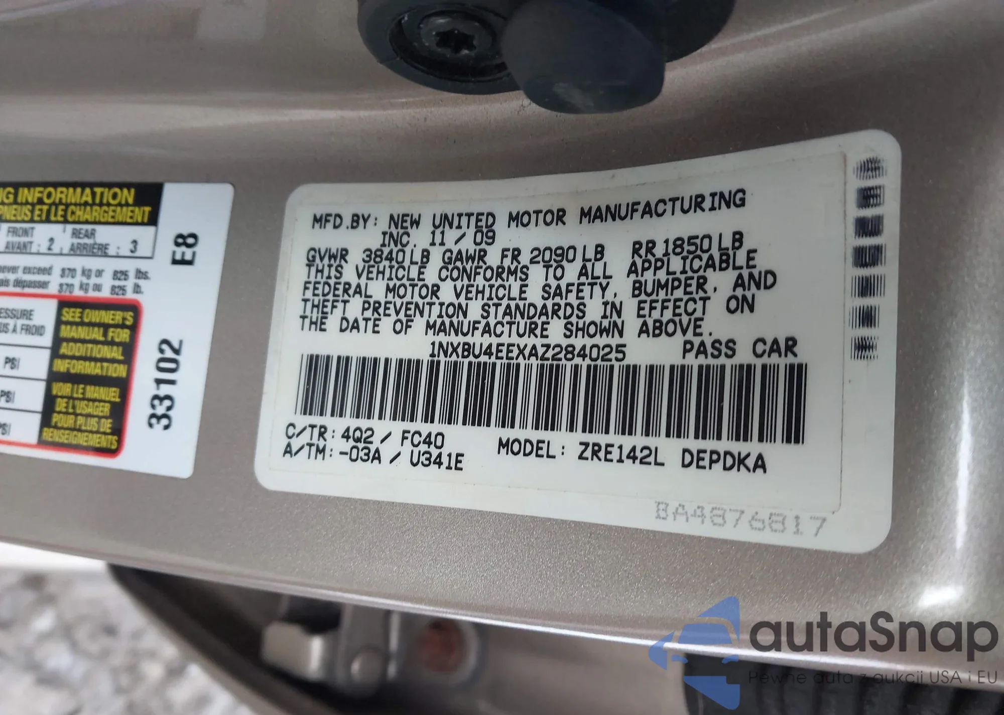 VIN: 1NXBU4EEXAZ284025