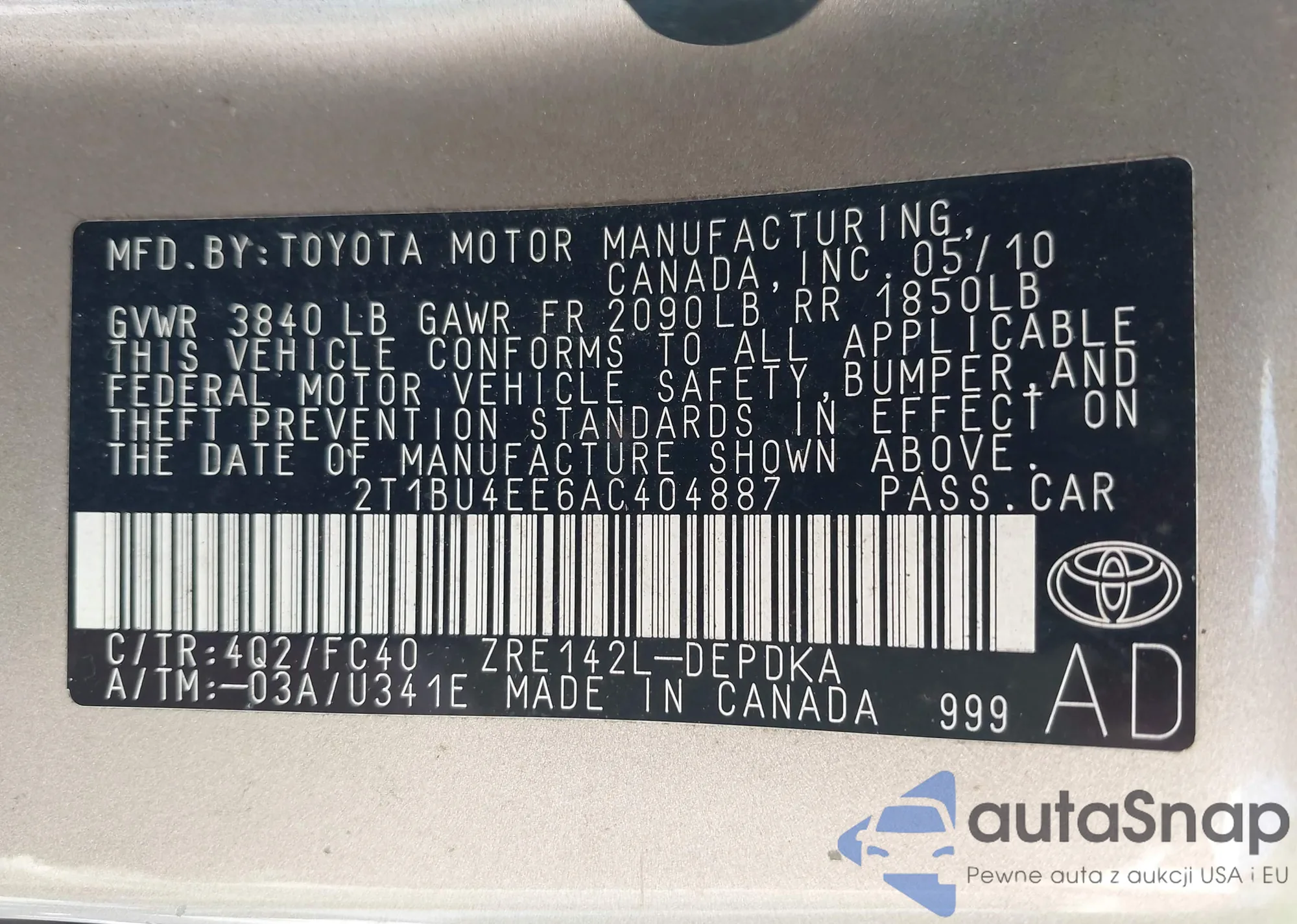 VIN: 2T1BU4EE6AC404887