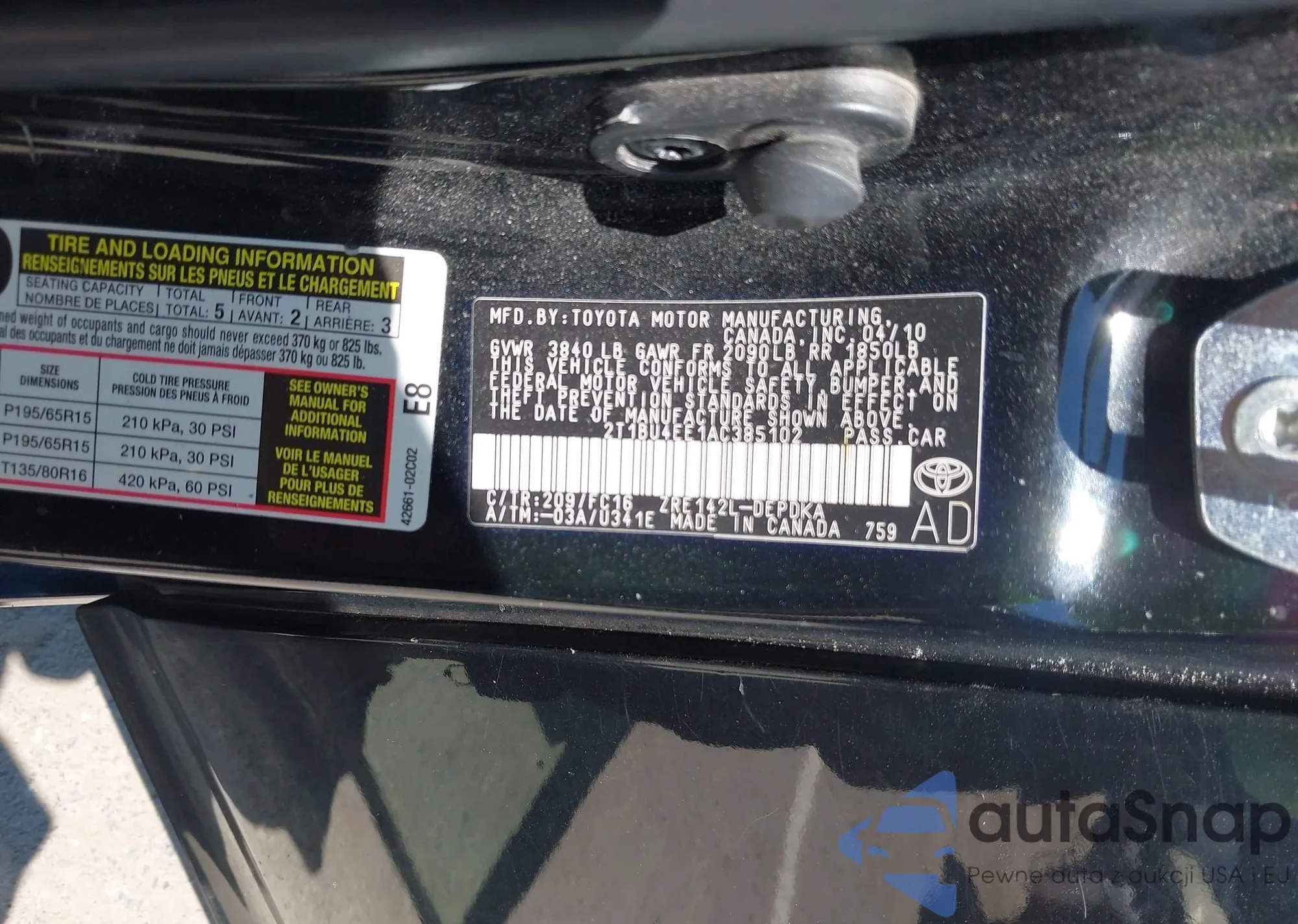 Toyota Corolla 2010 – Vehicle History (Sold at IAAI)