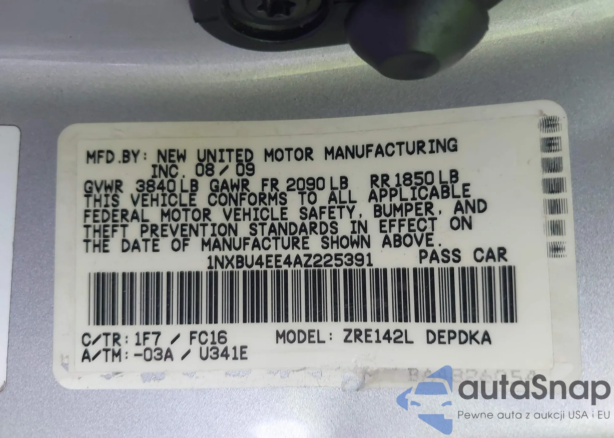 VIN: 1NXBU4EE4AZ225391