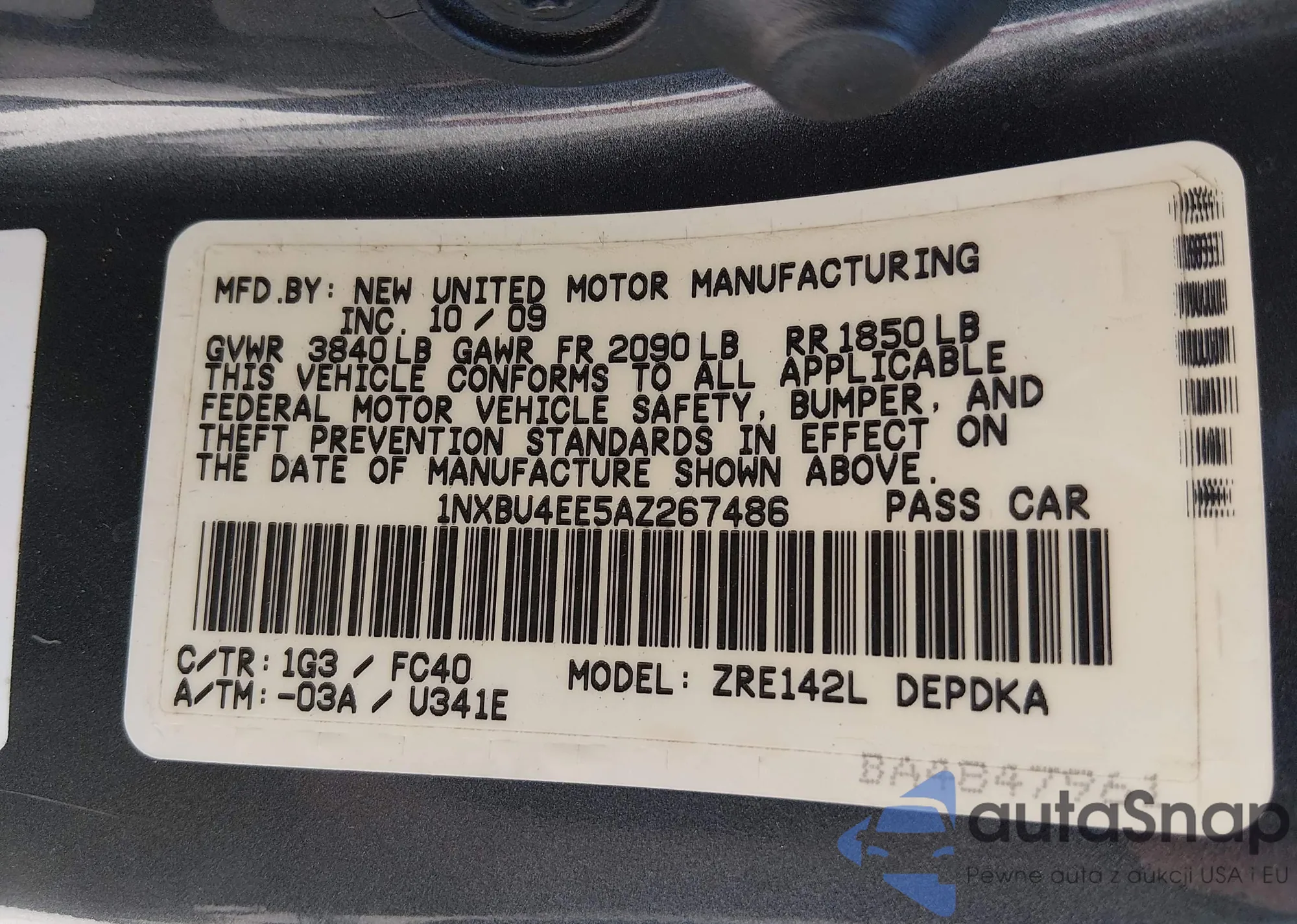 The car Toyota Corolla 2010 (VIN 1NXBU4EE5AZ267486) has not been auctioned before. The documents are clean, and the mileage matches or is below the market average. Sold by an insurance company – we recommend purchase. Delivery to the port will take approx. 6–8 weeks.