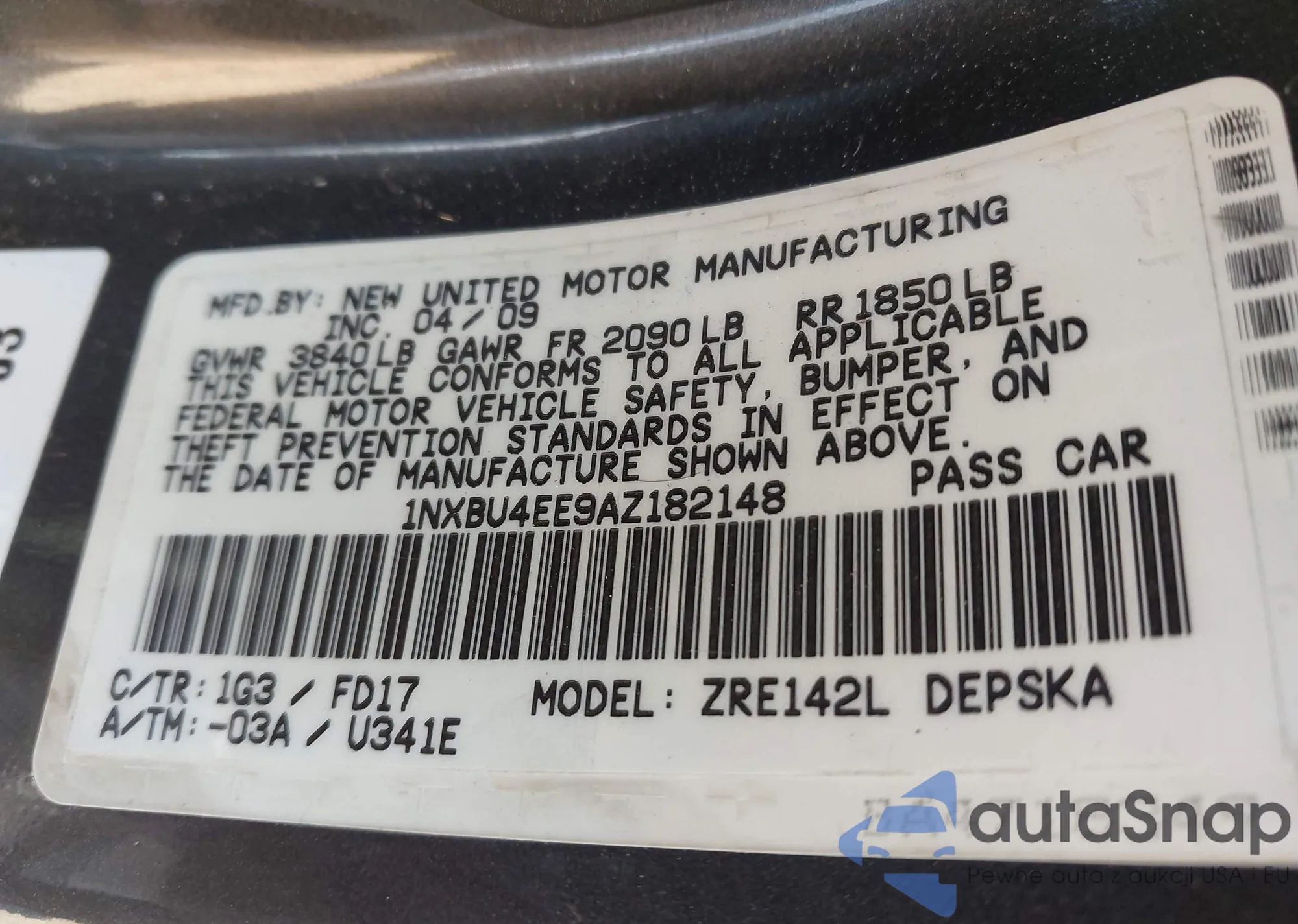 VIN: 1NXBU4EE9AZ182148