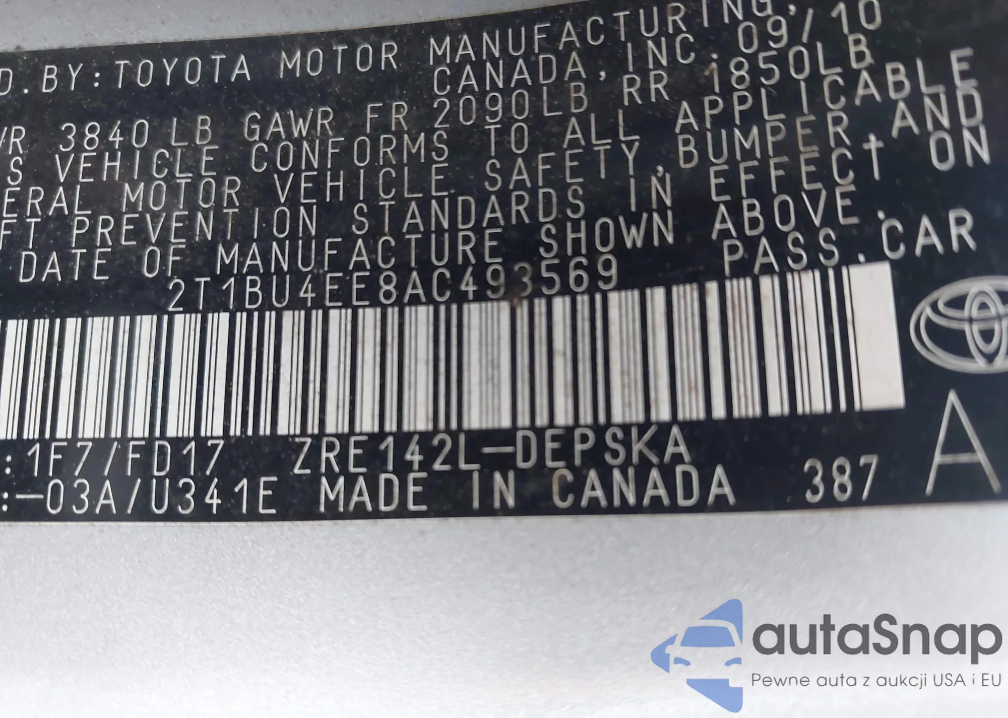 VIN: 2T1BU4EE8AC493569