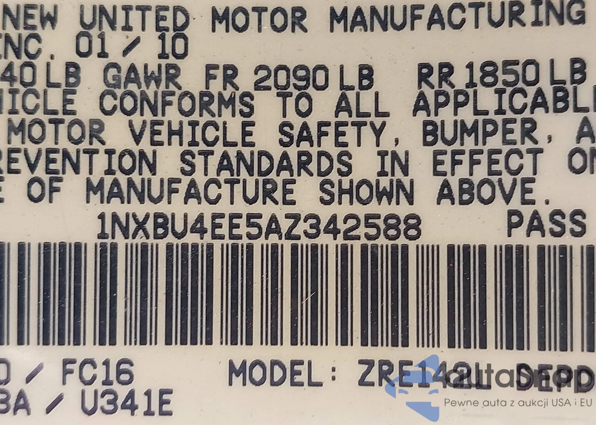 • VIN: 1NXBU4EE5AZ342588