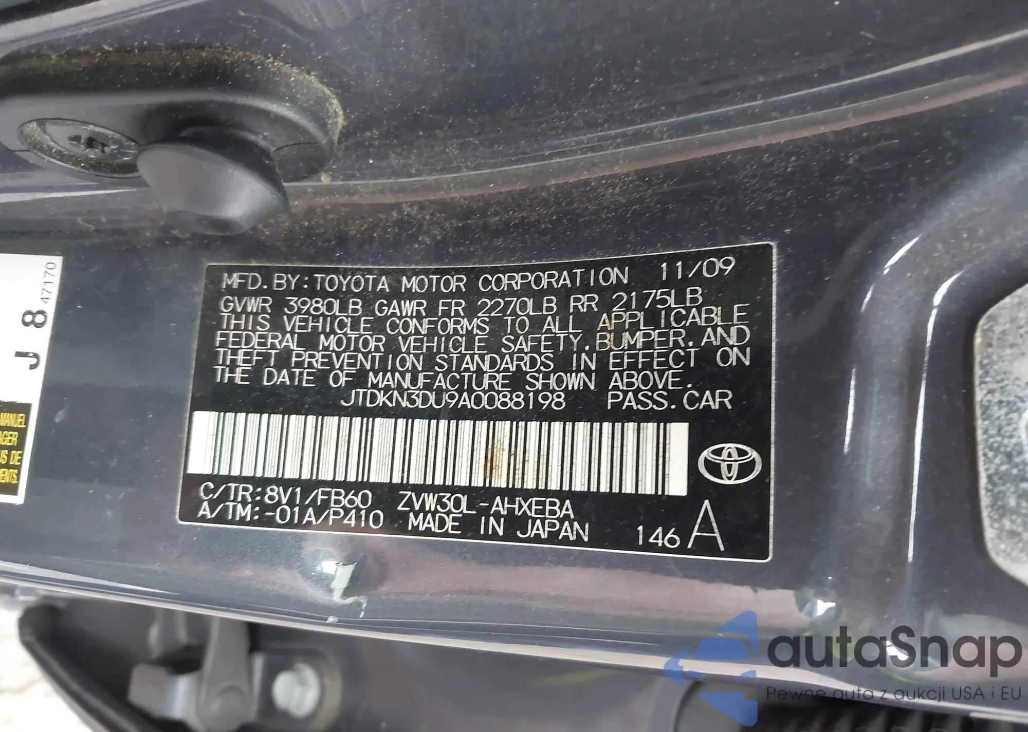 The car Toyota Prius 2010 (VIN JTDKN3DU9A0088198) is sold by an unverified seller. We recommend checking the Carfax report and confirming registration possibilities before purchase.