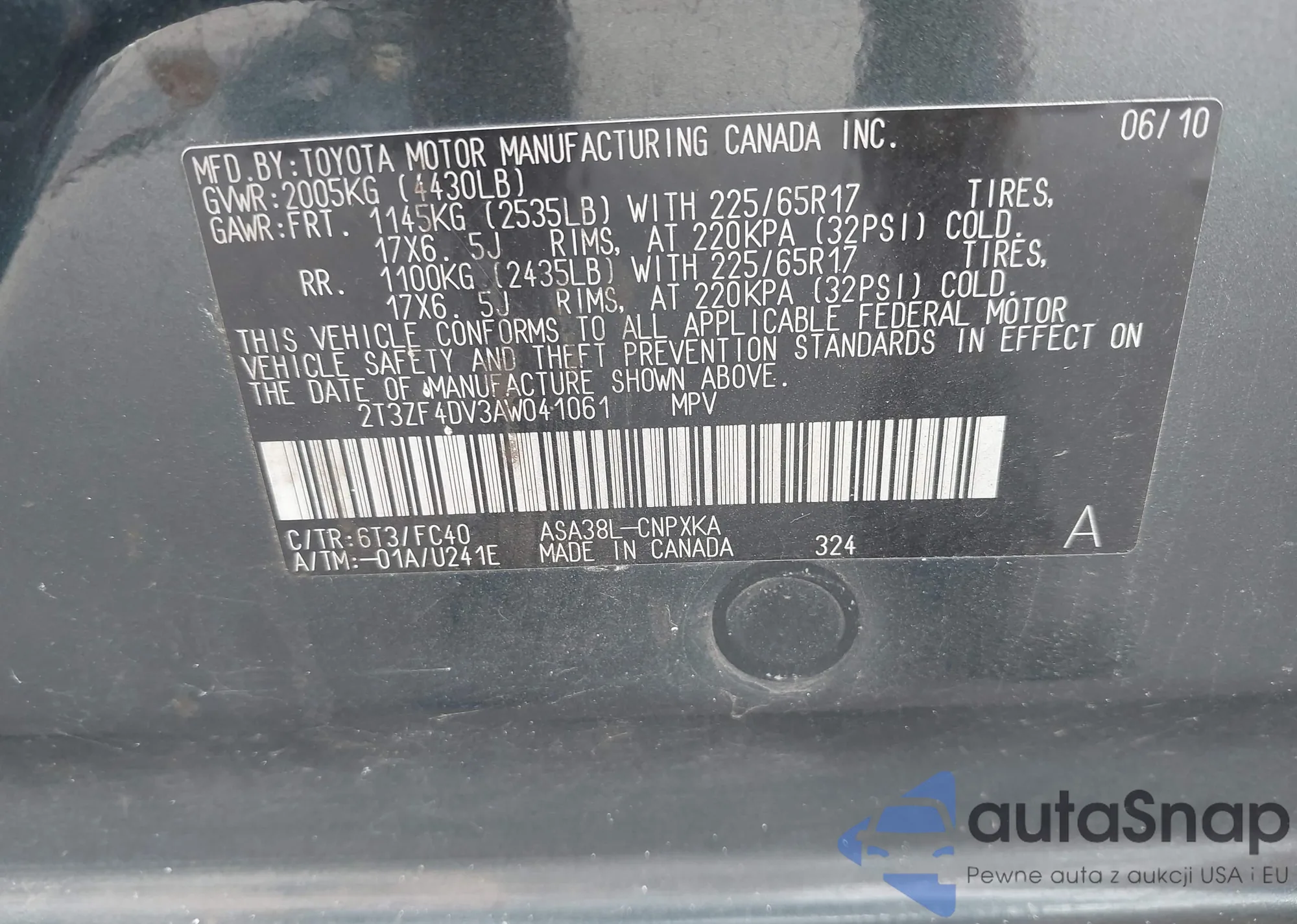 VIN: 2T3ZF4DV3AW041061